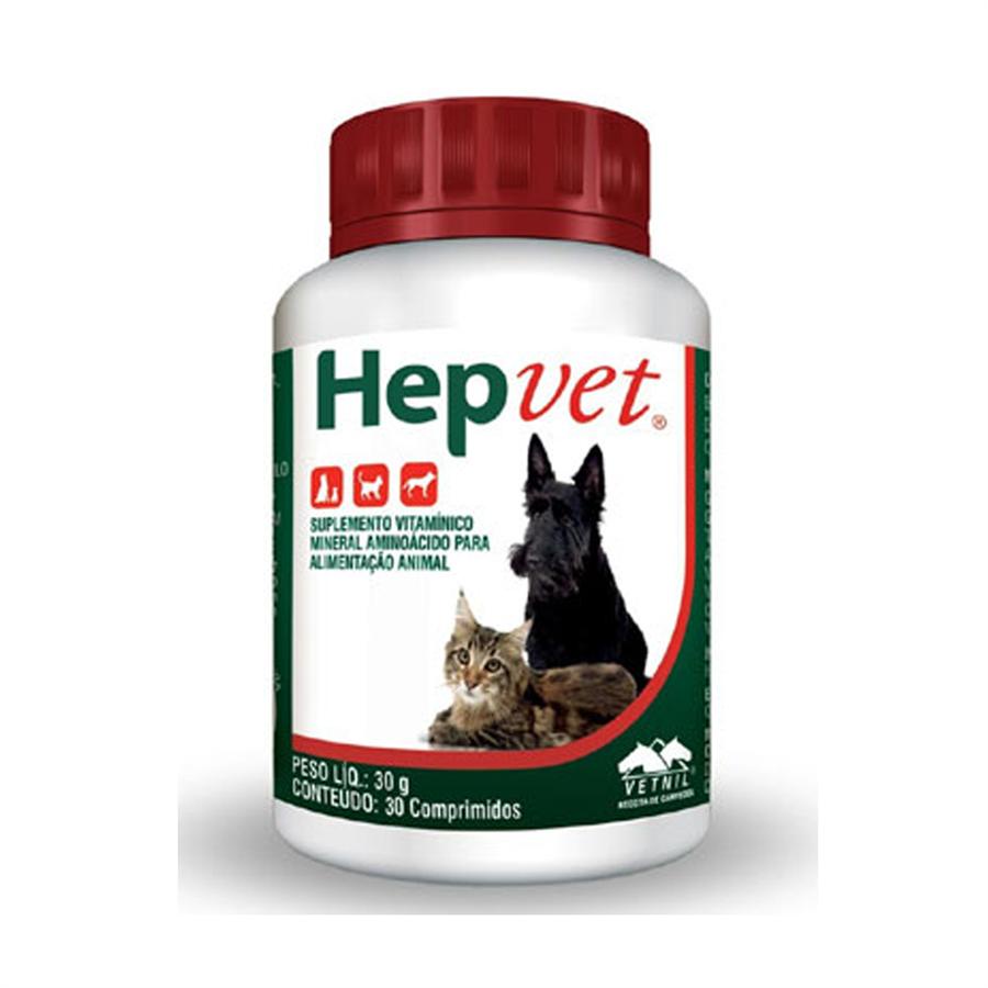 Hepvet é um produto formulado especialmente para auxiliar no metabolismo de gorduras e proteínas. Contém nutrientes que agem sinergicamente, favorecendo os processos fisiológicos e a ação da Glutationa. PRINCIPAIS VANTAGENS • Indicado para o auxílio no metabolismo de gorduras e proteínas; • Contém nutrientes precursores da Glutationa; • Sem metionina; • Alta palatibilidade: sabor bacon. COMPONENTES DE DESTAQUE • Cisteína: precursora direta da Glutationa; • Piridoxina (Vitamina B6): favorece o aumento dos níveis de Cisteína; • Glutamina e Glicina: aminoácidos que integram a molécula de Glutationa; • Riboflavina (Vitamina B2): importante para a regeneração da molécula de Glutationa; • Colina e Inositol: essenciais para a metabolização de gordura. MODO DE USAR • Cães: 1 comprimido para cada 10 kg de peso corporal por dia, máximo de 4 comprimidos ao dia; • Gatos: Filhotes: ¼ de comprimido por dia. Adultos: ½ comprimido por dia. Idade: Adulto, Filhote e Sênior Pet: Gatos e Cachorros Uso: Oral Apresentação: 30 comprimidos Tipo: Suplemento alimentar Indicação: Suplementação alimentar para cães e gatos Composição: Arginina, cinarina, cisteína, colina, extrato de alcachofra, glicina, inositol glutamina, selênio, extrato de cardo-mariano, taurina, vitamina B12, vitamina B2, vitamina B6, zinco quelatado. Níveis de Garantia: Comprimido do produto: Arginina (mín.) 1,65 mg Cinarina (mín.) 0,58 mg Cisteína (mín.) 10,02 mg Colina (mín.) 20,25 mg Extrato de alcachofra (mín.) 110,5 mg Glicina (mín.) 1,66 mg Inositol (mín.) 15,074 mg Glutamina (mín.) 1,66 mg Selênio (mín.) 0,017 mg Extrato de cardo-mariano (mín.) 180,4 mg Taurina (mín.) 0,76 mg Vitamina B12 (mín.) 33,52 mcg Vitamina B2 (mín.) 0,99 mg Vitamina B6 (mín.) 0,98 mg Zinco quelatado (mín.) 0,44 mg Código de barras: 7898053585161