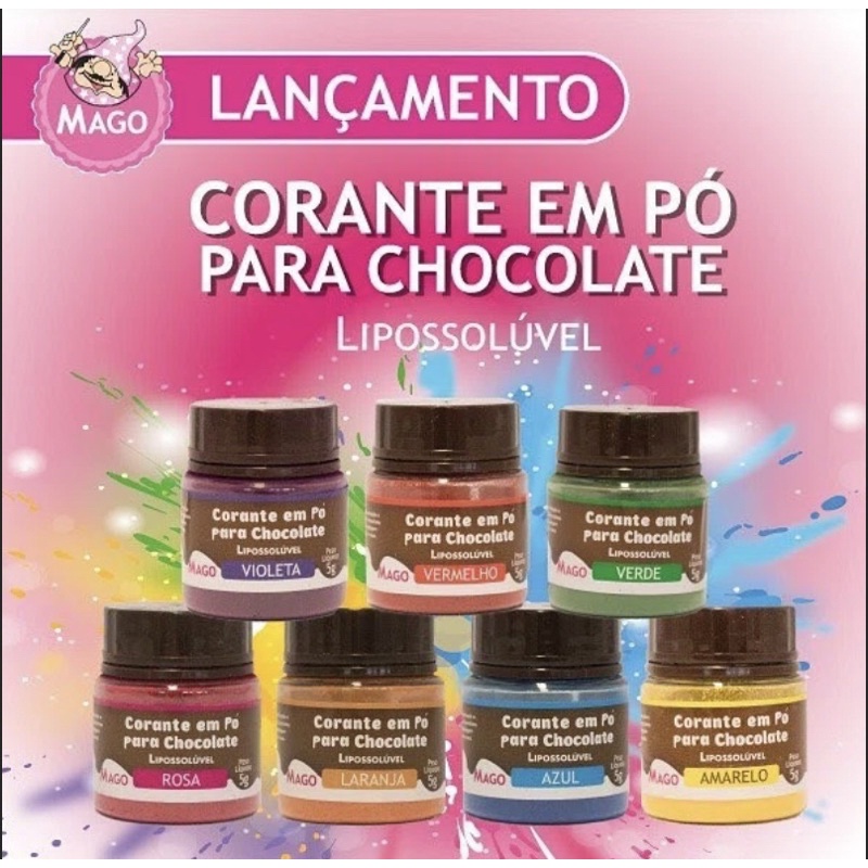CORANTES LIPOSSOLUVEL MAGO EM PÓ, CORES AMARELO,AZUL, VERDE, VERMELHO,LARANJA,ROSA E MARROM | Food & Beverages