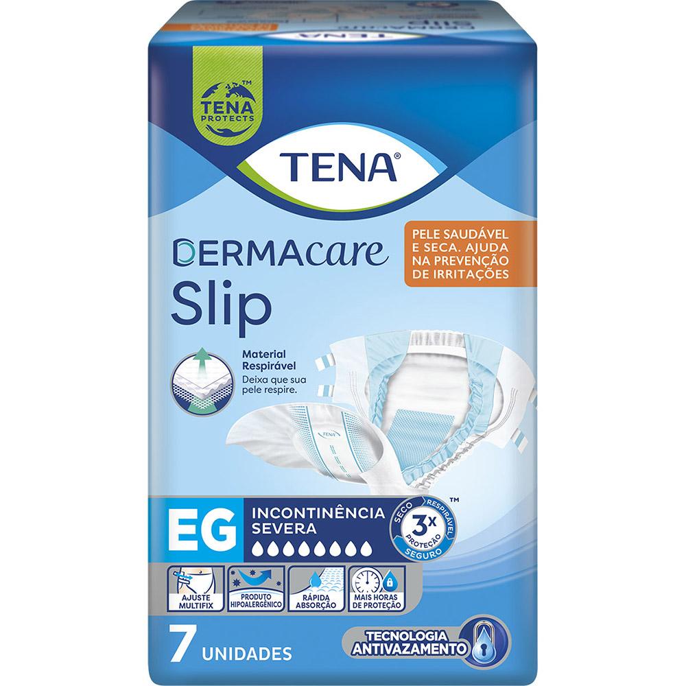 Fralda TENA Dermacare possui dupla camada e um núcleo de alta absorção que rapidamente retém a urina promovendo segurança em um produto hipoalergênico. Com tecido macio e respirável que permite a respiração da pele, mantém a mesma sempre seca e saudável, ajudando a prevenir irritações. Possui tecnologia antivazamento com barreiras protetoras, elásticos nas costas e controle antiodor. Indicada para incontinência urinária e fecal em usuários com pouca ou nenhuma mobilidade. • Tamanho: EG (120 - 164 cm). • Referência: Acima de 90kg.