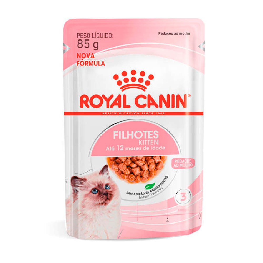 A Ração Úmida Royal Canin Kitten Gatos Filhotes é um alimento completo super premium indicado para gatos filhotes até 12 meses de idade. Formulada especialmente para apoiar as necessidades nutricionais dos gatinhos na segunda etapa de crescimento (fase de consolidação). Royal Canin kitten possui textura macia para os dentes de leite, pedaços ao molho de tamanho, textura e sabor atrativos para os gatinhos em desenvolvimento. Não contém corantes e nem aromas artificiais. Com vitaminas C e E para apoiar o desenvolvimento do sistema imunitário saudável, a Ração Úmida Royal Canin Kitten também é enriquecida com ácido graxo ômega 3 para auxiliar no desenvolvimento cerebral. Além disso, graças a uma combinação de prebióticos benéficos e proteínas de elevada digestibilidade, também ajuda a apoiar um equilíbrio saudável da flora intestinal e a saúde digestiva. Ingredientes Água, glúten de trigo, gelatina, amido de milho, celulose, óleo branqueado e desodorizado de peixes, farinha de arroz, óleo de girassol refinado, farinha de marigold, pescoço de frango sem pele, fígado de frango, vísceras de frango, fígado de suíno, rim de suíno, plasma sanguíneo desidratado de suíno, cloreto de potássio, carbonato de cálcio, óxido de magnésio, tripolifosfato de sódio, carbonato de sódio, mananoligossacarídeos, carragena, parede celular de levedura (beta glucanas), extrato de leveduras, ácido ascórbico (vitamina C), colecalciferol (vitamina D3), acetato de dl-alfa tocoferol (vitamina E), cloridrato de tiamina (vitamina B1), riboflavina (vitamina B2), cloridrato de piridoxina (vitamina B6), cianocobalamina (vitamina B12), ácido nicotínico (niacina), D-pantotenato de cálcio, ácido fólico, biotina, cloreto de colina, betacaroteno, sulfato de zinco, sulfato de ferro, sulfato de cobre, sulfato de manganês, iodato de cálcio, zinco aminoácido quelato, cobre aminoácido quelato, manganês aminoácido quelato, taurina, DL-metionina.