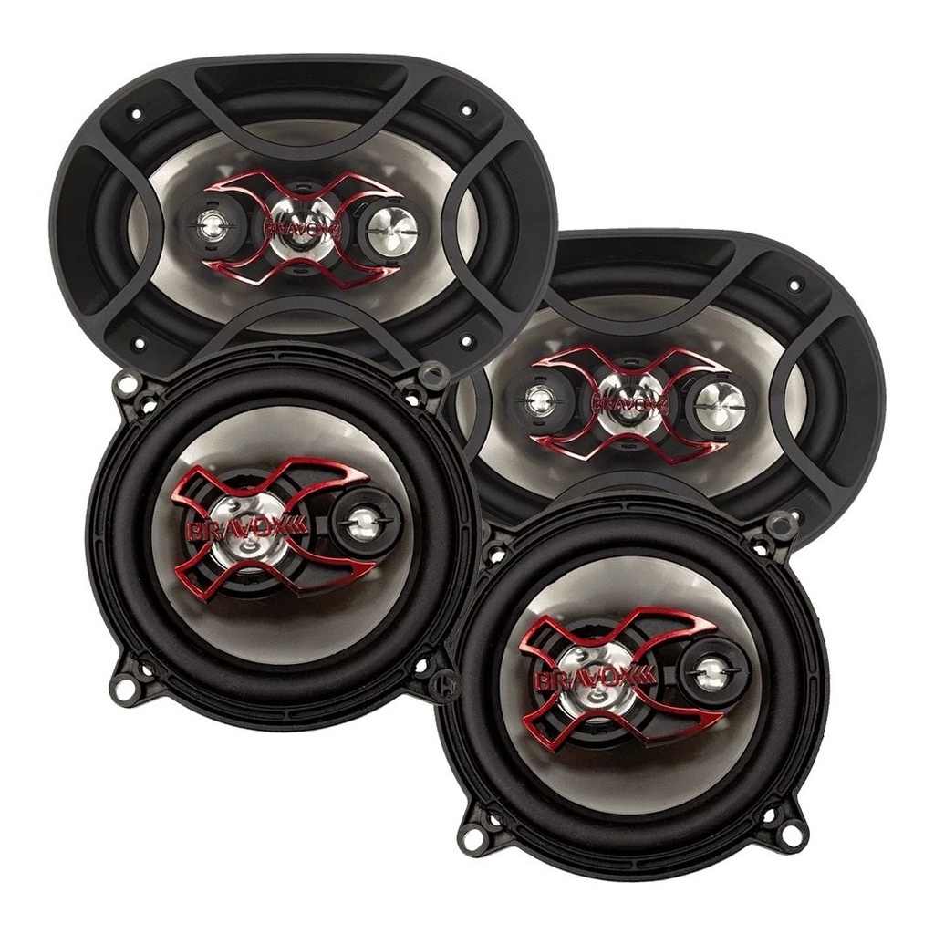 Agora você pode ter um incrível equipamento Bravox com esse kit. Já imaginou seu carro com o alto-falante mais vendido do Brasil? É isso mesmo, o B3X50X é sucesso absoluto! Eles são perfeitos para você curtir suas músicas favoritas enquanto dirige. Com 100W RMS de potência (par) eles podem ser instalados nas portas dianteiras, traseiras, tampão e painel com ou sem adaptações. Pra melhorar, acompanha o B4X69X, eles são perfeitos para você completar esse kit e curtir seu som, com 140W RMS de potência (par) eles podem ser instalados no tampão traseiro. Viaje tranquilo, viaje com BRAVOX, garanta já seu kit! Especificações Técnicas: Par Alto Falantes 6x9 Polegadas Bravox B4x69x • Potência: 70 Watts Rms • Potência Máxima: 140 Watts Rms • Impedância: 4Ohms • Resposta de Frequência: 50 - 20000 Hz • Tamanho: 6x9" • Tipo: Quadriaxial • Modelo: B4X69X • Linha: X • Cone Injetado em Polipropileno • Bobina em Corpo de Alumínio • Borda Injetada em Santoprene • Ímã de Fluxo Magnético • Tweeter Mylar e Midrange Alto Falantes Bravox 5 p 100 Watts Porta Dianteira • Potência: 50 Watts Rms • Potência Máxima: 100 Watts Rms • Impedância: 4Ohms • Resposta de Frequência: 70 - 20000 Hz • Modelo: B3x50x • Tamanho: 5" (Polegadas) • Tipo: Triaxial • Linha: X • Cone Injetado em Polipropileno • Bobina em Corpo de Alumínio • Borda Injetada em Santoprene • Ímã de Fluxo Magnético • Tweeter Mylar e Midrange Conteúdo da Embalagem: • 01 Par de Alto Falantes 5" Triaxial Bravox B3X50X • 01 Par de Alto Falantes 6x9" Quadriaxial Bravox B4X69X • Manual e Certificado de Garantia Importante: • Garantia de 273 dias. • Valor do Kit.
