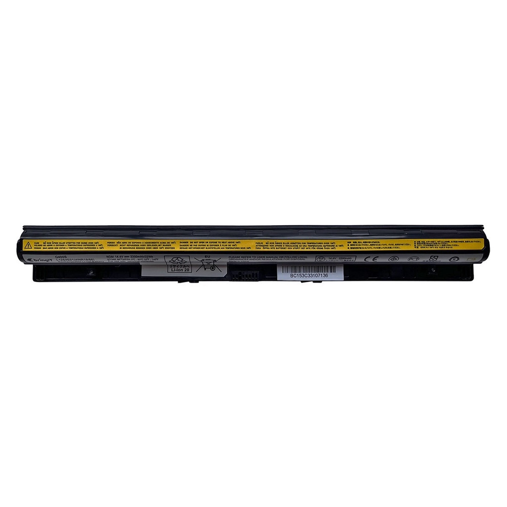 Bateria para Notebook Lenovo G40-80 | 4 Células Esta é uma Bateria bringIT compatível com o notebook Lenovo G40-80. Com alta durabilidade e qualidade, as baterias bringIT são de confiança e possuem compatibilidade garantida. Com excelente desempenho, possui proteção contra sobrecarregamento e sobreaquecimento. Além disso, as células são de íons de lítio (lithium-ion) e imunes ao “efeito memória”, ou seja, não viciam. Atenção! Essa é uma bateria bringIT, portanto não é um produto original da fabricante Lenovo. Caso seja necessário, todo o suporte e garantia do produto serão oferecidos pela nossa equipe. Para evitar problemas de compatibilidade, por favor verifique as especificações da sua bateria. Para evitar problemas de compatibilidade, compare as fotos deste anúncio com seu equipamento original. Assim você consegue verificar as principais informações de compatibilidade e demais especificações da sua bateria. Informações Técnicas Quantidade de células: 4 Células Capacidade: 2200 mAh Tensão (Voltagem): 14.4 V (14.8 V) Tensões equivalentes: 10.8V = 11.1V e 14.4V = 14.8V Cor: Preto Garantia: 12 meses de garantia contra defeitos de fabricação Referência: BC153