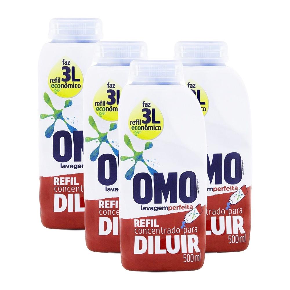 o kit contém: 4 Sabão Liquido Concentrado Omo Lavagem Perfeita Para Diluir com 500ml cada.