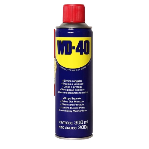 Marca: Wd40; 1 Unidade de WD-40 300ml Multiusos; Desengripa e Lubrifica; USO EM PESCA E NÁUTICA Para manter sempre imunes dos efeitos da maresia: molinetes, carretilhas, anzóis, alicates, iscas artificiais e arpões, depois de lavados com água limpa; Para desembaraçar linhas de nylon; Para proteger da umidade e corrosão: dobradiças, cabos, fechaduras, cadeados, zíperes e demais peças metálicas em equipamentos náuticos. USO EM ARMAS DE FOGO Para proteger sua arma da umidade e da ferrugem, antes de guardá-la; Para lubrificar as partes móveis e eliminar os vapores da queima do cartucho; Não há necessidade de remover WD-40 quando precisar usar a arma novamente. USO EM CARROS E MOTOS Para eliminar a umidade e a corrosão em circuitos de ignição, distribuidores, platinados, bobinas, cabos de vela, motores de partida, interruptores de iluminação, reguladores de voltagem, conexões, partes cromadas, guias das janelas, antenas de rádio e suportes de faróis; Para lubrificar aletas, estatores e válvulas de turbinas; Para liberar e lubrificar componentes emperrados pela ferrugem; Para retirar e evitar formação de azinabre em bornes de baterias; Para tratar fechaduras, trincos, dobradiças e limpadores de pára-brisas; Para evitar a aderência do gelo no metal em regiões muito frias; Para soltar porcas, parafusos e escapes enferrujados; Para não deixar que insetos grudem na grade do carro; Para proteger a placa da ferrugem; Para remover velas presas; Para renovar os pára-choques; Para dar brilho nas partes cromadas; Para hidratar e limpar bancos de couro; Para limpar bicos injetores; USO EM AVIÕES Para pulverizar magnetos em aviões com motores a pistão; Para eliminar umidade e depósitos de sal em trens de pouso; Para garantir o bom funcionamento dos geradores de emergência; Para neutralizar a corrosão em ambientes ácidos, como cozinha, toaletes e compartimentos de baterias; Para proteger cabos de controle, tampas de inspeção, roldanas e terminais com aplicações periódicas; Para garantir a remoção de água em locais rebitados; Para proteger a parte interna dos painéis, onde a corrosão normalmente se propaga sem ser descoberta; Para proteger equipamentos de radar e lâmpadas de sinalização;