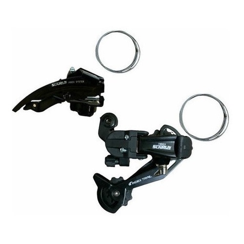 KIT CAMBIO TRASEIRO E DIANTEIRO + 2 CABOS DE BRINDE CABO 1.2MMX1900MM, 19FIOS Cambio Dianteiro DualSunrun/Paco Velocidades: 9 Velocidades (3x9 = 27 velocidades) ou 8 Velocidades (3x8 = 24 Velocidades) ou 7 Velocidades (3x7 = 21 Velocidades) Diâmetro da Abraçadeira: 31.8mm ou 34.9mm Acompanha parafusos de Fixação Capacidade Máxima: 42 à 44 Dentes Sistema Indexado Composição Aço Marca: Sunrun/Paco Cor: Preto Marca: Sunrun Cor: Preto Compatível com cassetes de 8 velocidades; Compatível com sistema de transmissão 2x8 e 3x8 velocidades; Tecnologia de trocas indexadas trabalha com posições fixas nas coroas, onde marchas entram automaticamente dispensando ajustes necessários no sistema não indexado, proporcionando trocas rápidas e precisas; Roldanas com 11 dentes; Cage longo; Construção - Alumínio e Resina; Capacidade de até 43D.