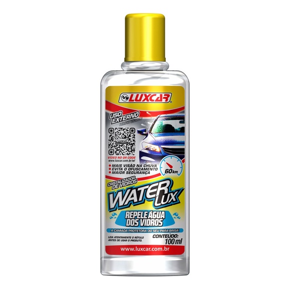 O Cristalizador de Vidros Waterlux Luxcar foi especialmente desenvolvido para dispersar a chuva, granizo ou lama durante o contato. Aumenta o campo de visão e reduz o estresse provocado durante longas viagens em dias chuvosos. O produto forma um filme que adere ao vidro, fazendo a água escorrer rapidamente pela aerodinâmica quando o carro está em movimento, geralmente em torno de 60 km/h.
