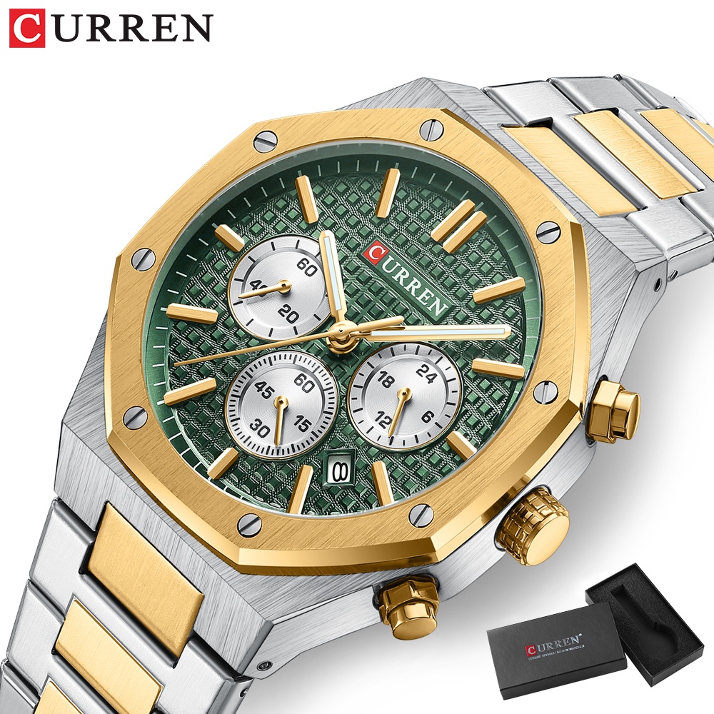 Bem-vindo à nossa loja ✅⌚Entrega de todos os pedidos: Todos os pedidos serão enviados dentro de 24h. ✅⌚Pós-venda mais recente: Melhor solução para seus problemas. ✅⌚Atacadista e revendedor são muito bem-vindos. ✅⌚Espero que você aproveite suas compras. —————————————————————— 💎⌚Característica da característica: -★⌚Cronógrafo de cronógrafo (todas as mãos funcionando), luminoso, diário -★⌚À prova d'água 3ATM / 30M★⌚(Não Opere os botões do relógio na água e não use o relógio em contato com água quente). -★⌚Alta qualidade★:⌚ 100% novo vidro mineral de alta dureza (anti-risco), estojo de alta qualidade durável. -★⌚Ideias de presente: relógios são ótimos presentes, aniversários, aniversários de amigo, amados, dia das mães, presentes de formatura, presentes de dia dos namorados, ou como presentes para trabalho e festas。 💎⌚Especificações do: Tamanho do Mostrador(Diâmetro):43mm - Tamanho do Mostrador(Diâmetro):43mm - Espessura do Mostrador: 11mm Tamanho da Alça(Comprimento):24cm Tamanho da alça (Largura): 22mm 💎⌚Descrição: Marca -Marca: CORRENO -Código Do modelo: 8440 caixa de ter】 Material da Caixa: Liga Material da Correia: Aço Inoxidável Gênero da moda: Homens -Estilo: Esporte, Casual, Negócios, Moda Exibição: Analógico Alimentado por bateria - alimentado por bateria 💎⌚Os produtos incluem produtos Relógios genuínos -100% de relógios genuínos Caixa 💎⌚Tempo de garantia:Não A Loja faz o seu melhor para resolver o problema para você】 ————————————————————— -★⌚Serviço de serviço de serviço de serviço: 1.Somos o fabricante original. 2.Todos os produtos são 100% novos e originais. 3.Estamos comprometidos em oferecer-lhe produtos com a mais alta qualidade com preço razoável. 4.Loja Loja dedicada a oferecer uma boa experiência ao cliente! 5.A satisfação do cliente é a busca vital para nós como sempre.