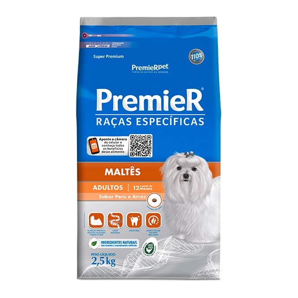 Cada raça possui suas particularidades e se beneficia de cuidados especiais. Pensando nestas necessidades a PremieRpet® criou PremieR Raças Específicas, a primeira linha mundial de nutrição específica para raças. Desenvolvida com ingredientes nobres e alta tecnologia, PremieR Raças Específicas oferece benefícios exclusivos que visam minimizar os principais problemas de saúde das raças e auxiliar para o pleno desenvolvimento de suas características típicas desejáveis. PremieR Maltês foi formulada a partir deste conceito e oferece tudo o que esta raça precisa para manter sua saúde e beleza. Oferece ainda redução do volume e odor de fezes minimizando possíveis inconvenientes de uma convivência tão próxima entre os cães e seus proprietários