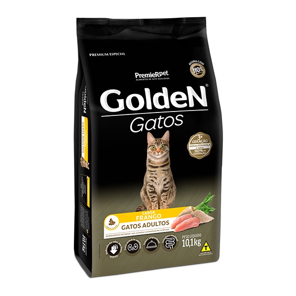 Formulada com ingredientes de alta qualidade e balanceada para suprir às particularidades nutricionais dos felinos, GoldeN Gatos Adultos Frango oferece sabor irresistível e cuidados especiais com o trato urinário, garantindo assim, sabor e saúde para seu gato.