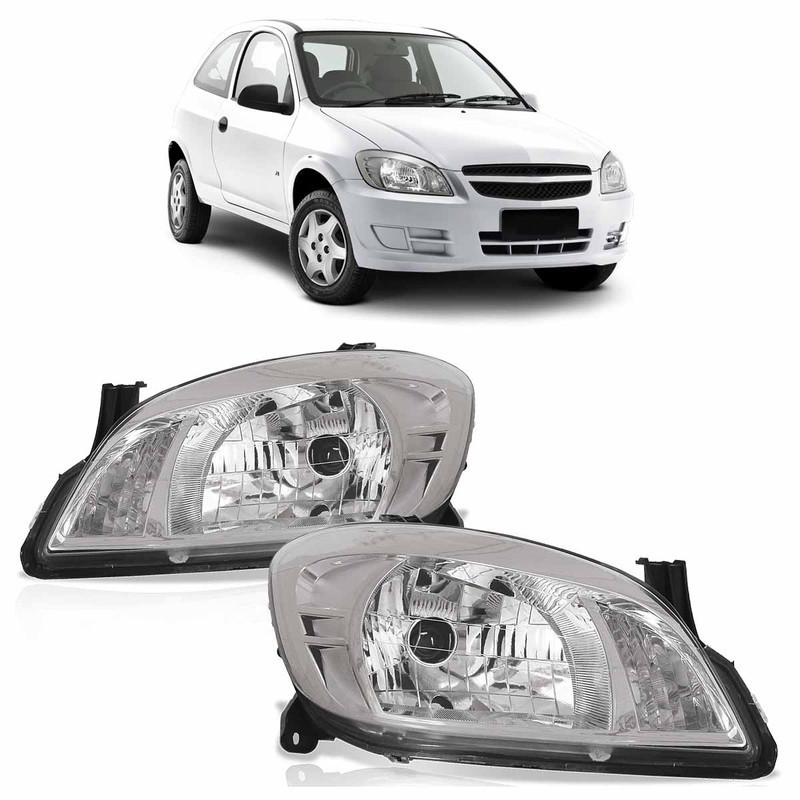 Farol Dianteiro Chevrolet Celta 2007 2008 2009 2010 2011 2012 2013 2014 2015 Máscara Cromada Características: Produto novo de ótima qualidade; Feito sob medida, encaixe perfeito; Não acompanha lâmpadas e soquetes. Especificações técnicas: Foco simples; Máscara cromada; Cor da carcaça: preta; Encaixe de lâmpada H4; Regulagem de foco manual; Suporta lâmpadas até 55 watts; Lente lisa em acrílico resistente. Compatível com os modelos: Celta 2007 a 2015; Prisma 2007 a 2011. Códigos originais: 93345411; 93345412. Garantia: 90 dias. Dica: Dê um novo visual para o seu carro, aqui você encontra os melhores produtos com os melhores preços. Importante: NÃO nos responsabilizamos pela má instalação ou mau uso do produto, para evitar transtornos procure por um profissional especializado.