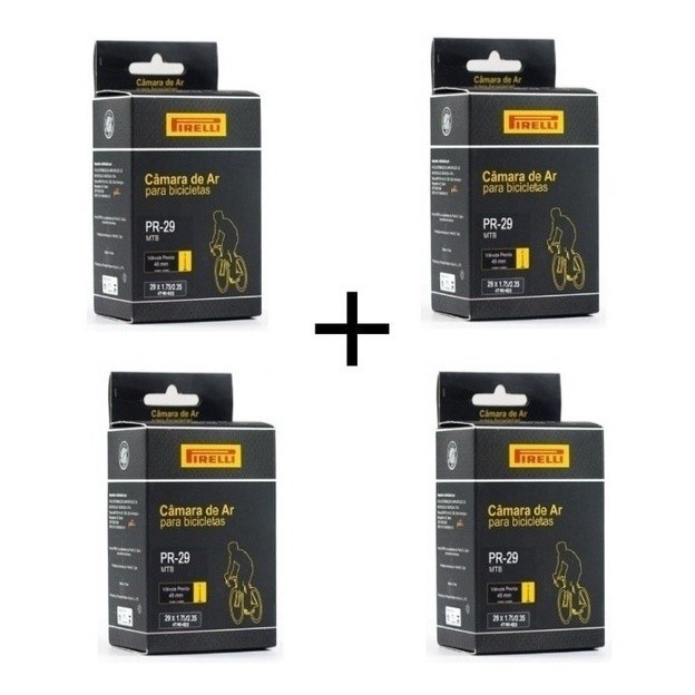 O KIT ECONÔMICO PARA QUEM NÃO PODE PARAR! ESTOQUE GARANTIDO. 🚴♂️🔧 Pneu furado não avisa quando vai acontecer. Com este Kit com 4 Câmaras Pirelli Aro 29, você garante suas pedaladas por muito tempo e ainda economiza no frete e no valor unitário. Este modelo PR-29 é fabricado com borracha Butyl de alta qualidade e tecnologia Seamless (Sem Costura). Isso garante uma espessura uniforme, evitando que a câmara estoure sozinha ou crie bolhas, além de segurar a pressão do ar por muito mais tempo. Equipada com Válvula Presta (Bico Fino) de 48mm, ela possui o tamanho ideal para aros de parede dupla (Aero), facilitando o encaixe da bomba sem sofrimento. POR QUE COMPRAR O KIT COM 4? ✅ Melhor Preço: O custo por unidade sai muito mais barato que comprar avulso. ✅ Prevenção: Tenha sempre uma reserva na mochila e outra em casa. ✅ Qualidade Pirelli: Aceita remendos (a quente ou a frio) com perfeição, prolongando a vida útil. ✅ Elasticidade: Serve numa gama enorme de pneus (do 1.75 até o largo 2.35). FICHA TÉCNICA: Marca: Pirelli Modelo: PR-29 (Linha MTB) Quantidade: 04 Unidades Aro: 29 Válvula: Presta (Bico Fino) Comprimento da Válvula: 48mm (Ideal para aros de parede dupla) Medida: 29 x 1.75/2.35 (47/60-622) Material: Borracha Butyl Peso: Aprox. 210g (cada) COMPATIBILIDADE DE PNEUS: Esta câmara serve perfeitamente em todas as medidas abaixo: 29x1.95 29x2.00 29x2.10 (Medida padrão MTB) 29x2.20 / 2.25 29x2.30 / 2.35 O QUE VEM NA CAIXA? 📦 04 Câmaras de Ar Pirelli Aro 29 Bico Fino 48mm. PERGUNTAS FREQUENTES (FAQ): 1. O bico é fino ou grosso? R: Este anúncio é para BICO FINO (Presta). Verifique se o furo do seu aro é estreito. Se o seu aro tiver o furo largo para bico de carro, você pode usar esta câmara desde que use a porca de fixação para travar ela no lugar. 2. Serve em pneu 2.10 e 2.20? R: Sim! Ela é extremamente elástica e cobre com segurança desde o pneu mais fino de terra (1.75) até os pneus largos de trilha (2.35). 3. Por que 48mm de válvula? R: A válvula de 48mm é um pouco mais longa que a padrão (33mm). Isso ajuda muito quem tem aros de parede dupla (como Vzan Extreme, Absolute, etc.), pois o bico fica mais para fora, facilitando encher. 4. O produto é novo e original? R: Sim, kit composto por 4 unidades novas, originais Pirelli. Garanta seu estoque e pedale sem preocupação. Envio Imediato! 🟠⚫