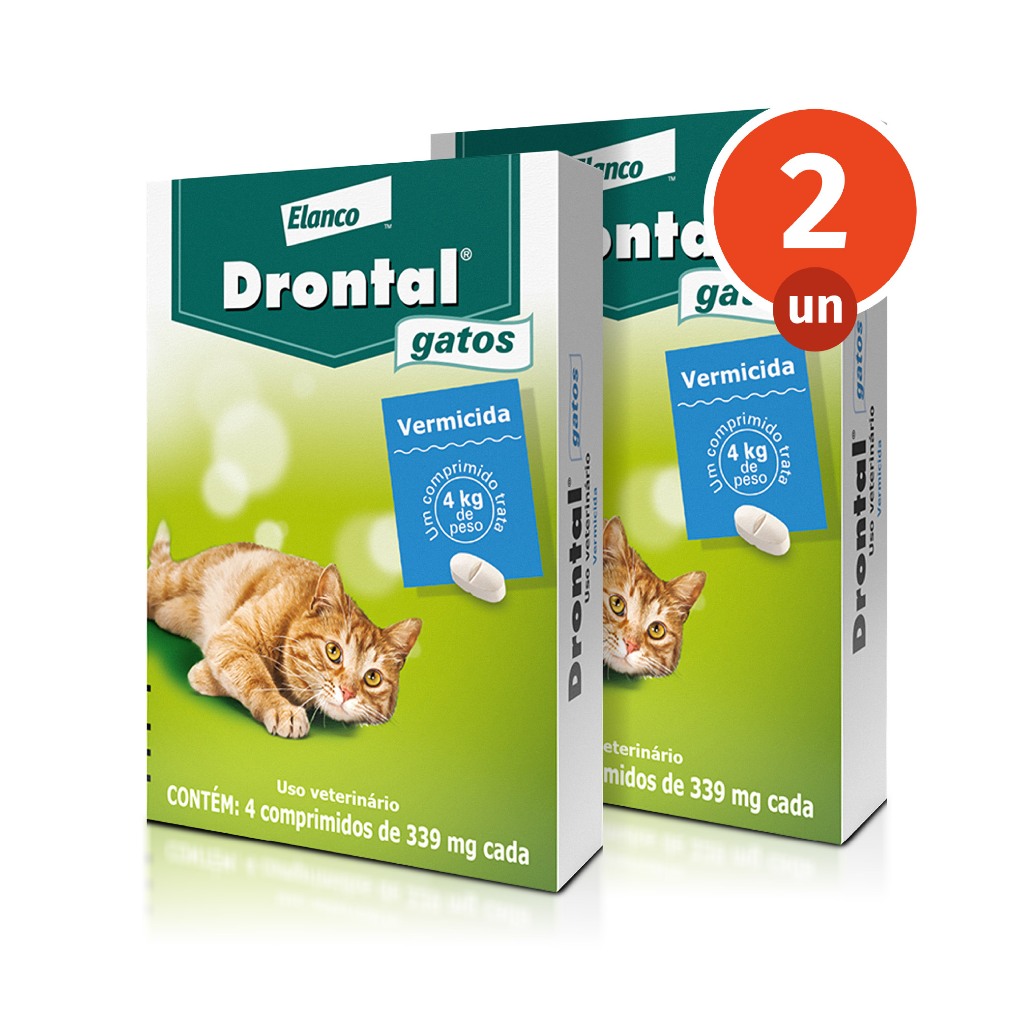 Kit 2 Vermífugo Drontal Gatos 4 Comprimidos para Gatos de até 4kg Elanco - 67% OFF | Pets
