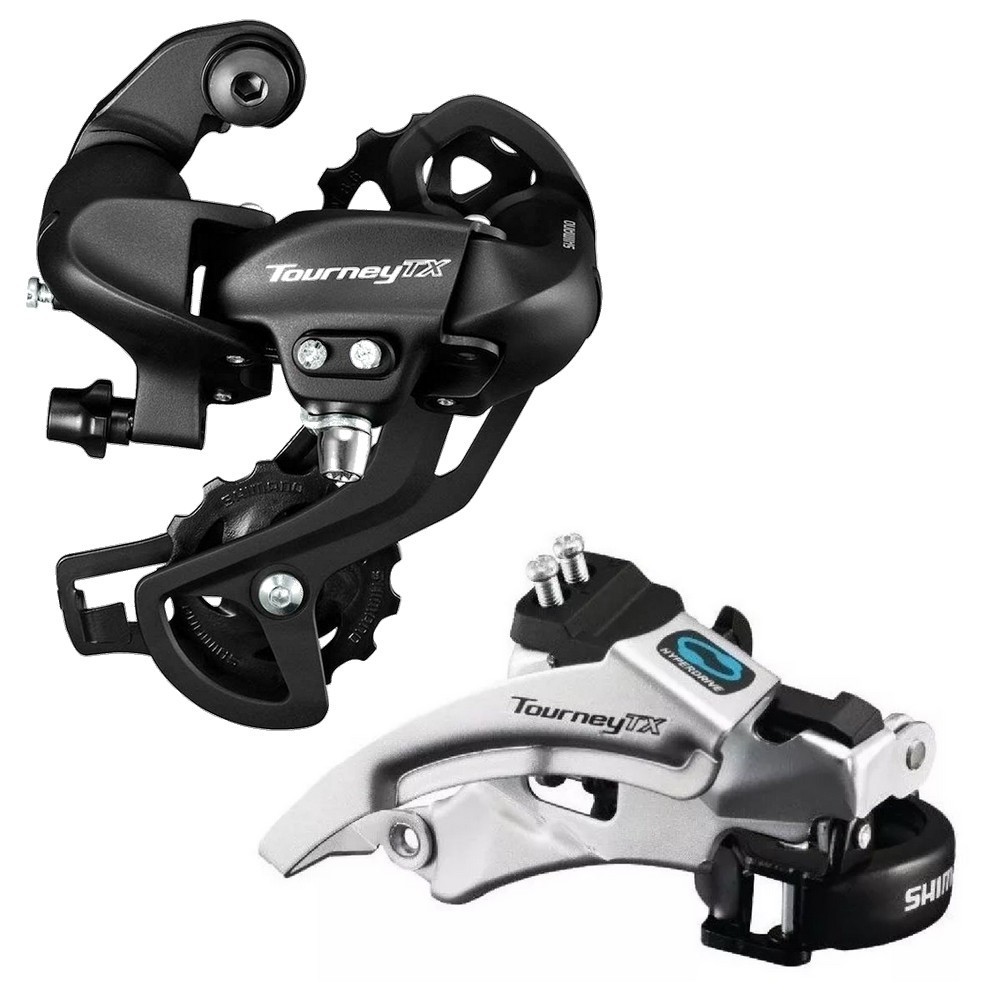 CÂMBIO TRASEIRO E DIANTEIRO SHIMANO TOURNEY TX800 RD-TX800 SGS + FD-TX800-TS - 3X7V / 3X8V Conjunto de câmbios específico para: - Cassete de 7 ou 8 velocidades: 11/28, 11/30, 11/32, 11/34, 12/32, 14/28 ou 14/34; - Pedivela com configuração de coroas: 48/38/28D ou 42/32/22D. Itens que compõe o anúncio: 01 und - CÂMBIO TRASEIRO SHIMANO TOURNEY TX RD-TX800 SGS - 7V / 8V - ATÉ 34D; 01 und - CÂMBIO DIANTEIRO SHIMANO TOURNEY TX FD-TX800 3X8V - ABRAÇADEIRA BAIXA 34,9MM C/ REDUTOR 31,8MM - COROA MAIOR DE 42D A 48D. CÂMBIO TRASEIRO SHIMANO TOURNEY TX RD-TX800 SGS - 7V / 8V - ATÉ 34D Especificações: - Marca: SHIMANO; - Linha: TOURNEY TX - Modelo: RD-TX800SGS; - Compatível com: 7 e 8 Velocidades; - Sistema: Servo Duplo – Polias com 13D; - Tamanho máximo de dentes do cassete: 34D; - Capacidade total: 43D; - Fixação: DIRETA – Parafusado na gancheira do quadro; - Material: Aço, Plástico; - Cor: Preto; - Peso: 325g; - Origem: Singapura - Part. Number: ARDTX800SGSL. CÂMBIO DIANTEIRO SHIMANO TOURNEY TX FD-TX800 3X8V - ABRAÇADEIRA BAIXA 34,9MM C/ REDUTOR 31,8MM - COROA MAIOR DE 42D OU 48D Especificações: - Marca: Shimano; - Linha: TOURNEY TX; - Modelo: FD-TX800-TS6 - TOP Swing - Abraçadeira Baixa 34,9MM com redutor 31,8mm; - Compatível com: 03 Coroas / 3x7v ou 3x8v; - Rota do cabo de aço: DUAL-PULL – Puxa por cima ou Puxa por baixo; - Montagem: Abraçadeira BAIXA; - Fixação: Abraçadeira de 34,9mm com redutor 31,8mm; - Coroa maior do Pedivela: 42D ou 48D; - Diferença para coroa central: 10D - Maior diferença entre as coroas (MAIOR – MENOR): 20D - Ângulo Chain Stay: 66-69°; - Chainline / Linha da Corrente: 47,7mm à 50mm; - Cor: PRETO / PRATA; - Peso: 195g; - Origem: INDONÉSIA; - Part Number: AFDTX800TSM6. Atenção: - Produto original SHIMANO. Aguardamos o seu pedido! INDIAN BIKE SHOP