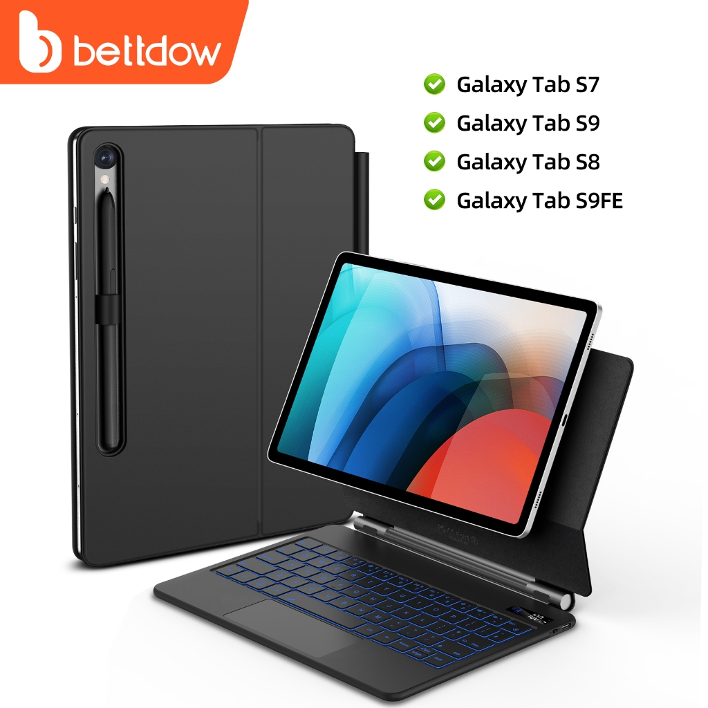 Observe: Este produto inclui apenas o teclado, o tablet não está incluído! O produto inclui apenas o estojo de couro e o teclado, não o tablet. Não compre errado Característica do produto: Compatível com Samsung Galaxy Tab S9 FE 11 polegadas 2023 (Modelo SM-X510 / SM-X516B) Samsung Galaxy Tab S9 11 polegadas 2023 (Modelo SM-X710 / SM-X716B / SM-X718U) Samsung Galaxy Tab S8 11 polegadas 2022 (Modelo SM-X700 / SM-X706) Samsung Galaxy Tab S7 11 polegadas 2020 (Modelo SM-T870 / SM-T875 / SM-T876) Samsung Galaxy Tab S7+ 12.4 polegadas (Modelo SM-T970 / SM-T976B / SM-T975) Samsung Galaxy Tab S7 FE 12.4 polegadas (Modelo SM-T730 / SM-T733/ SM-T736B) Samsung Galaxy Tab S8+ 12.4 polegadas (Modelo SM-X800 / SM-X860) Samsung Galaxy Tab S9+ 12.4 polegadas (Modelo SM-X810 / SM-X816B) Samsung Galaxy Tab S9 FE+ 12.4 polegadas (Modelo SM-X610 / SM-X616B) Samsung Galaxy Tab S10+ 12.4 polegadas 2024 (Modelo SM-X820 / SM-X826B) OBSERVAÇÃO: Não é compatível com nenhum outro dispositivo. (Somente Magic Keyboard, Tablet e Pencil NÃO estão incluídos) 【Suporte Cantilever Flutuante】BETTDOW Samsung Magic Keyboard adota design de suspensão magnética, forte sucção magnética para garantir a segurança do seu tablet Oferece o ângulo perfeito apenas abrindo a capa, transforma seu Samsung Tab S9 Fe/S9/S8/S7 em um laptop em um segundo. Você também pode acordar ou colocar seu tablet para dormir abrindo ou fechando a capa do teclado - perfeito para viagens, negócios, escola. 【Multi-Trackpad】Comparado com outros produtos, o cursor do BETTDOW Samsung Magic Keyboard e os gestos multitoque foram projetados para Galaxy Tab S9 FE/S9/S8/S7, permitindo que toda a região seja clicada e pressionada. Navegue pelo seu tablet de uma maneira totalmente nova com um touchpad Click-anywhere, role, deslize, clique e pressione e muito mais. O trackpad é responsivo e confiável, o que pode aumentar significativamente a produtividade no trabalho e no estudo. 【Tela de exibição digital LCD】A capa de teclado mágico BETTDOWSamsung adota design de exibição digital LCD. O status da exibição inclui status de energia, status de Caps Lock, status de carregamento e status de conexão Bluetooth. Torna você mais conveniente no processo de uso para saber se ele foi ligado, se deve abrir a função de letras maiúsculas, a conexão Bluetooth foi bem-sucedida ou não, quanta energia restante. 【Teclado e atalhos com retroiluminação LED de 7 cores】Teclado BETTDOW Samsung Tab S9/S8/S7 com luz de fundo de 7 cores, 3 níveis de brilho são ajustáveis e as teclas são iluminadas em um ambiente escuro para obter uma experiência de digitação confortável. As teclas de atalho são projetadas no teclado, só precisa pressionar a tecla "Fn" e a tecla de função correspondente, que pode ajustar o volume, brilho, para cima ou para a próxima faixa, etc. O design do botão foi atualizado, sinta-se mais confortável e não é fácil de se cansar.