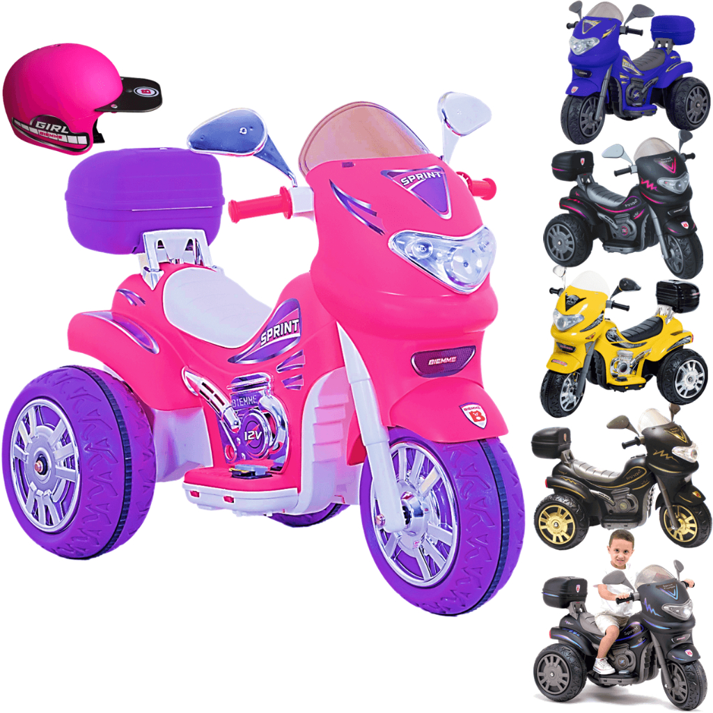 Moto Elétrica Infantil Biemme Sprint Turbo 12V com Capacete A Maçã Verde Baby apresenta a super Moto Elétrica Sprint Turbo 12V da Biemme! Com design moderno, cores vibrantes e rodas largas que lembram uma verdadeira moto esportiva, ela é a escolha perfeita para crianças apaixonadas por aventuras. Acompanha capacete combinando e adesivos personalizados para deixar a experiência ainda mais divertida. Vale a pena comprar a Moto Elétrica Sprint Turbo 12V da Biemme? Ela é boa? Resistente e estilosa, a Sprint Turbo da Biemme é ideal para crianças a partir de 3 anos e suporta até 35kg. Seu motor de 12V garante velocidade de até 5km/h, e os recursos adicionais como buzina, faróis, setas, marcha frente e ré e pedal de aceleração com trava removível proporcionam uma experiência completa e segura. Conforto e segurança em cada passeio Com assento anatômico antiderrapante, suporte para os pés, rodas com cinta de borracha e calotas decorativas, a Sprint Turbo foi desenvolvida para oferecer conforto e estabilidade durante os passeios. A motoca acompanha bagageiro traseiro com compartimento para o capacete, além de painel eletrônico com luzes e sons divertidos. Fácil de montar, fácil de carregar O brinquedo é fabricado em plástico injetado reforçado (polietileno/poliuretano) e já acompanha carregador bivolt (127V/220V). A montagem é simples e rápida, bastando seguir o manual incluso. Ideal para uso em ambientes externos com piso plano, como quintais, calçadas e parques. Limpeza e manutenção A limpeza da Sprint Turbo pode ser feita com pano úmido e detergente neutro. Para manter as rodas brilhando, aplique um pouco de óleo de cozinha após a secagem, retirando o excesso. Evite o uso de jatos de água ou submersão. Para prolongar a vida útil do brinquedo, mantenha a bateria sempre carregada e lubrifique as engrenagens periodicamente. Cores e modelos A Moto Elétrica Sprint Turbo 12V está disponível nas versões Gold, Amarela, Pink, Azul, Preta Boy e Preta Girl. Todos os modelos você encontra aqui na Maçã Verde Baby! Gostou? Aproveite e garanta já a sua Sprint Turbo 12V da Biemme aqui na Maçã Verde Baby! Ficamos no aguardo de sua compra! Neste anúncio especial da Maçã Verde Baby, você vai levar: 1 (uma) Moto Elétrica Biemme Sprint Turbo 12V (escolha o modelo nas opções do anúncio) 1 (um) Capacete Infantil Quer saber mais detalhes sobre a Moto Elétrica Sprint Turbo 12V da Biemme? Moto Elétrica Biemme Sprint Turbo 12V Design esportivo com luzes e sons Assento anatômico antiderrapante Marcha frente e ré Pedal de aceleração com trava de segurança removível Farol, setas e painel eletrônico com efeitos sonoros Rodas largas com faixa antiderrapante Carregador bivolt incluso (entrada 127/220V – saída 14V, 800mA) Bateria: 2 baterias seladas de 6V / 4,5Ah (total 12V) Tempo de recarga: Primeira carga 6 horas; demais 4 a 6 horas Duração estimada da bateria: até 1 hora de uso contínuo Velocidade máxima: até 5km/h Idade recomendada: a partir de 3 anos Peso máximo suportado: 35kg Certificado de Registro INMETRO: CE-BRI/INNAC-00658-01A NM300/2002 Dimensões do produto: Comprimento 116,5 cm x Largura 64,5 cm x Altura 80,5 cm Peso: 14,8kg