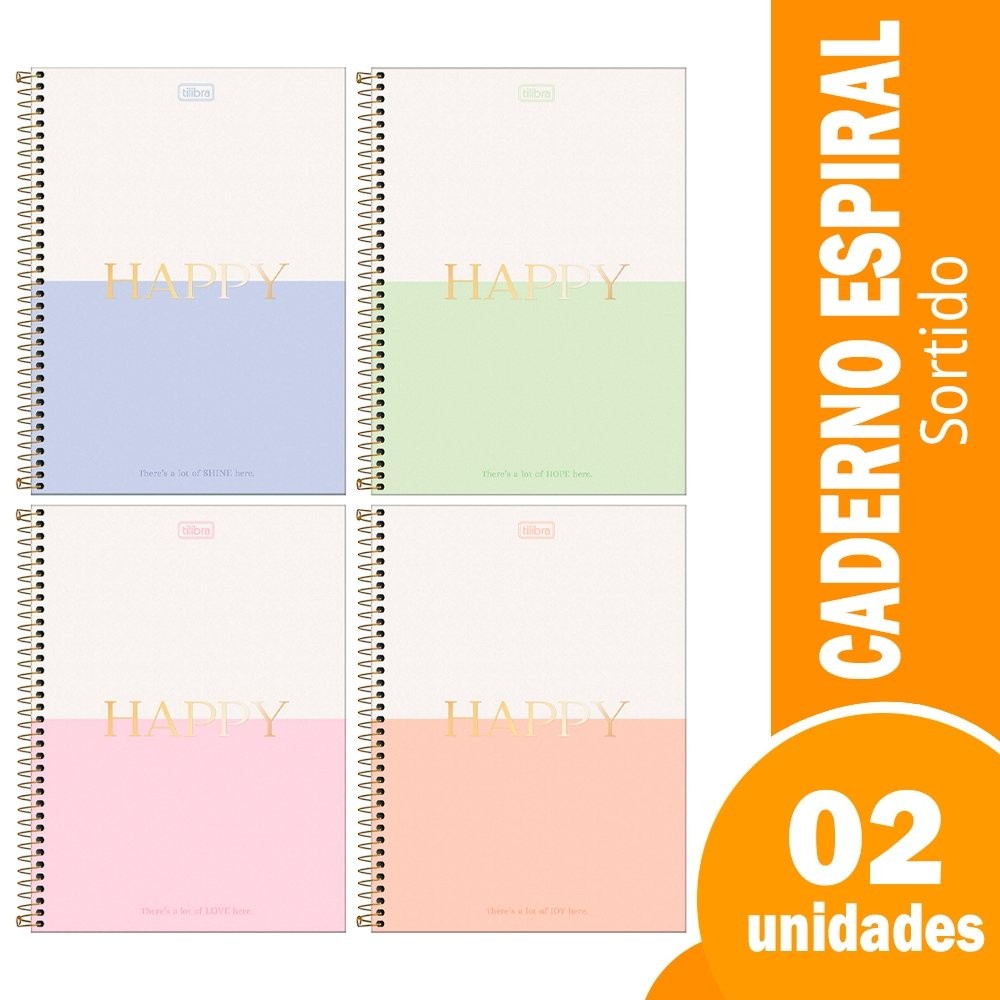 Caderno Espiral Tilibra Universitário Capa Dura Happy 16 Matérias 256 Folhas - Embalagem com 2 Unidades (Sortidos) | Stationery