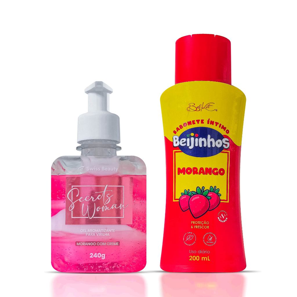 PRODUTO ORIGINAL COM NOTA FISCAL! - - - - - APRESENTAÇÃO: KIT 1 x Gel Aromatizante Morango 240G Swiss Beauty + 1 x Sabonete Intimo Beijinhos Morango 200Ml - - - - - - - - - - DESCRIÇÃO DO PRODUTO 1: Uma combinação incrível da leveza de um gel com a cremosidade irresistível do morango com creme, proporcionando uma experiência sensorial única. Seu aroma delicioso transforma qualquer momento em prazer, enquanto sua textura inovadora desliza suavemente sobre a pele, deixando-a macia, aveludada e irresistível. - - - - - MODO DE USO DO PRODUTO 1: Aplique uma quantidade generosa na mão e massageie a região desejada. Depois, é só se deliciar com a textura e o sabor irresistíveis. - - - - - - - - - - DESCRIÇÃO DO PRODUTO 2: Desenvolvido para higienizar diariamente a região íntima feminina e promover sensação de frescor e bem-estar o dia todo. - - - - - MODO DE USO DO PRODUTO 2: No banho, coloque uma pequena quantidade na palma da mão e aplique na região íntima externa. Em seguida, enxágue bem para que não fique nenhum resíduo do produto. - - - - - - - - - - Enviamos o seu pedido o quanto antes possível! Agradecemos a preferência.