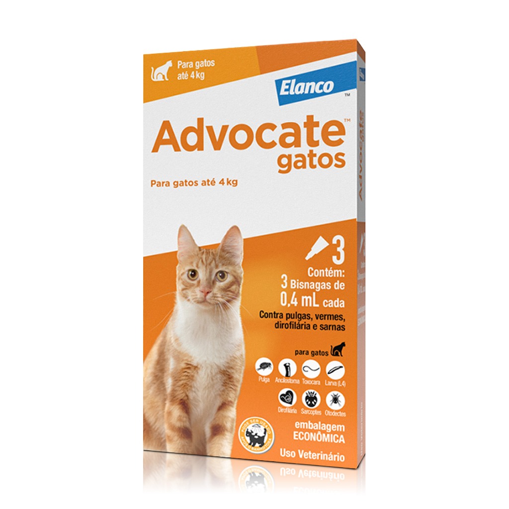 PRODUTO ORIGINAL COM NOTA FISCAL! - - - - - DESCRIÇÃO: O Advocate é um medicamento antipulgas desenvolvido pela Bayer. Eficiente e seguro, o Advocate possui versões para cachorros e gatos de diferentes faixas de peso. Desenvolvido a partir de pesquisas por profissionais capacitados, o Advocate é indicado para a prevenir e tratar infestações por pulgas, vermes (tipo relacionado à infestação de pulga), sarna e dirofilariose (verme do coração). - - - - - MODO DE USO: O Advocate é de uso tópico e deve ser utilizado seguindo as instruções abaixo: Retire a bisnaga plástica da embalagem. Segure-a na posição vertical e retire a tampa. Recoloque a tampa no sentido inverso ao anterior e gire-a, quebrando o lacre. Retire a tampa e aplique todo o conteúdo de uma única bisnaga diretamente sobre a pele seca do animal, na região da nuca ou da cernelha. - - - - - Enviamos o seu pedido o quanto antes possível! Obrigado pela preferência.