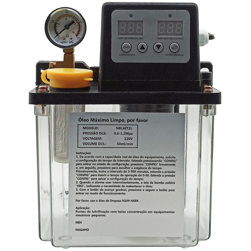 Bomba de Lubrificação Automática Injetora CNC 2L - Nagano NBLAIT2L: Precisão e Durabilidade para suas Máquinas. A Bomba de Lubrificação Automática Injetora CNC 2L - Nagano NBLAIT2L é a solução ideal para garantir a lubrificação eficiente e contínua de suas máquinas CNC e Tornos. Com uma capacidade de 2 litros, este dispositivo é projetado para injetar óleo ou fluido lubrificante de maneira controlada e automática nos pontos específicos de lubrificação da máquina, mantendo a operação suave e prolongando a vida útil dos componentes mecânicos. Características Principais: Capacidade: 2 litros, ideal para manter a lubrificação contínua. Saída da Mangueira: 4mm, garantindo precisão na aplicação do lubrificante. Tempo de Parada: Mínimo de 1 minuto e máximo de 999 minutos, ajustável conforme a necessidade da operação. Tempo de Fluxo: Mínimo de 1 segundo, permitindo alta precisão na lubrificação. Pressão: 0,6 - 1,2Mpa, assegurando a eficiência do sistema. Voltagem: 220V, compatível com diversas máquinas industriais. Volume DLS: 50ml/min, fornecendo a quantidade ideal de lubrificante. Sugestão de Óleo para Limpeza: N10#-N68#, para manutenção e limpeza eficazes. Benefícios: Operação Suave e Confiável: Mantém os componentes mecânicos em perfeito funcionamento, reduzindo o desgaste e aumentando a precisão do processo de usinagem. Durabilidade e Eficiência: Projetada para prolongar a vida útil das suas máquinas, minimizando o tempo de inatividade e os custos de manutenção. Controle Automático: Lubrificação automatizada que elimina a necessidade de intervenções manuais frequentes, melhorando a eficiência operacional. Capacidade: 2 litros Saída da mangueira: 4mm Tempo mínimo de parada: 1 minuto Tempo máximo de parada: 999 minutos Tempo mínimo de fluxo: 1 segundo Pressão: 0,6 - 1,2Mpa Voltagem: 220V Volume DLS: 50ml/min Sugestão de óleo para limpeza: N10#-N68# MODELO: NBLAIT2L