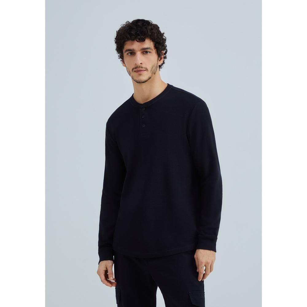 Camiseta Básica Henley Masculina Manga Longa Texturizada Hering | Men Clothes