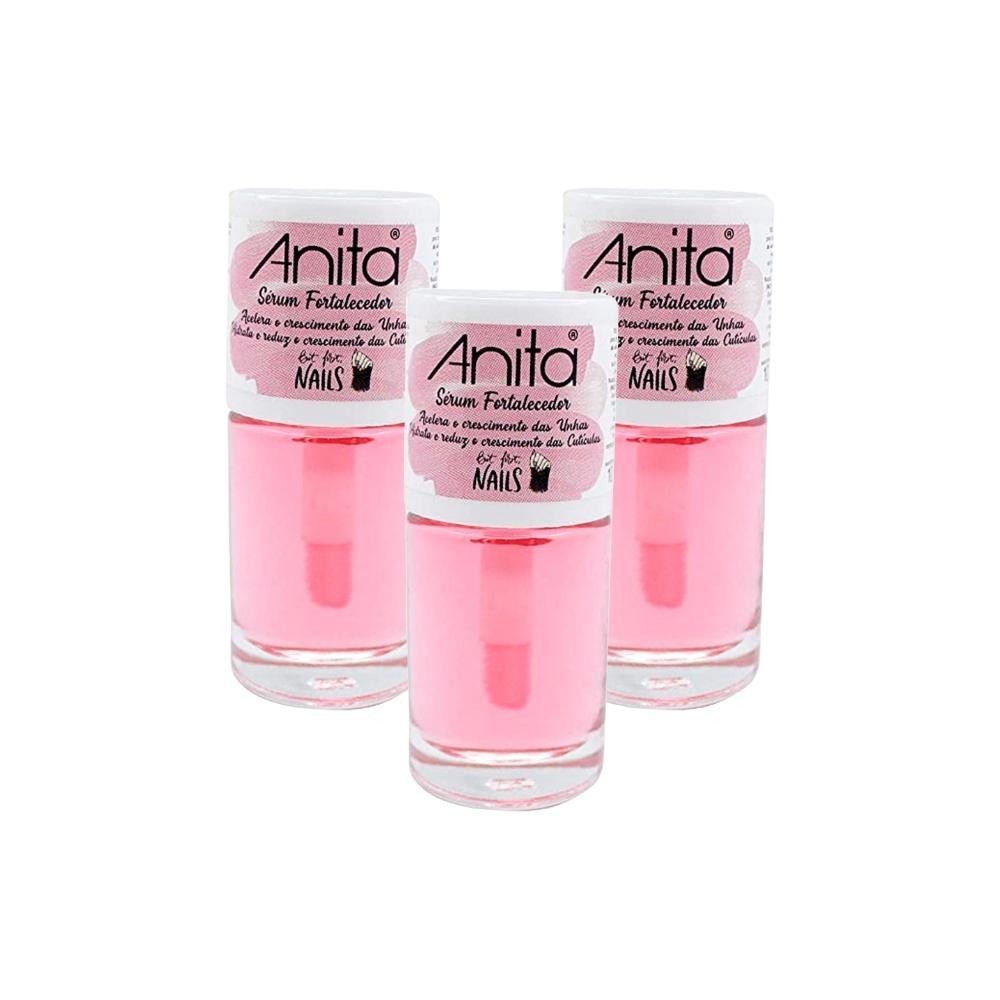 O Kit contém: 3 - Esmalte Anita Sérum Fortalecedor 10ml É um dos acessórios mais procurados pelas mulheres vaidosas que fazem questão de manter suas unhas radiantes e bem cuidadas. Possuem ótima textura garantindo durabilidade e brilho intenso por muito mais tempo. Além disso, proporciona um acabamento perfeito e uniforme resultando em unhas bonitas com um toque de puro charme e sedução.Os Esmaltes Anita possuem uma fórmula com vitaminas e minerais que ajudam a fortalecer as unhas, deixando-as bem cuidadas e cheias de vida.