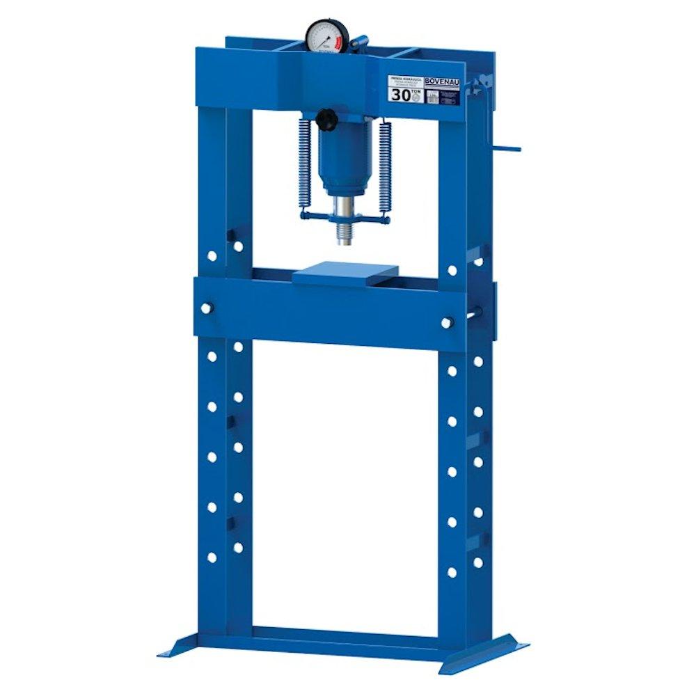 Prensa Hidráulica 30 TON P30000 BOVENAU Descrição do Produto Prensa hidráulica Mesa de trabalho com altura ajustável Manômetro posicionado sobre a prensa Válvula com indicação de sobrecarga Pistão com retorno automático O macaco hidráulico da prensa vem desmontado e acompanha folder explicativo para montagem DADOS TÉCNICOS: Capacidade: 30 Ton. Altura total: 1570mm Maior distância entre hidráulico/mesa: 830mm Menor distância entre hidráulico/mesa: 115mm Distância entre colunas: 585mm Garantia: 1 Ano Marca: BOVENAU Referência: P30000 * Imagens meramente ilustrativas.