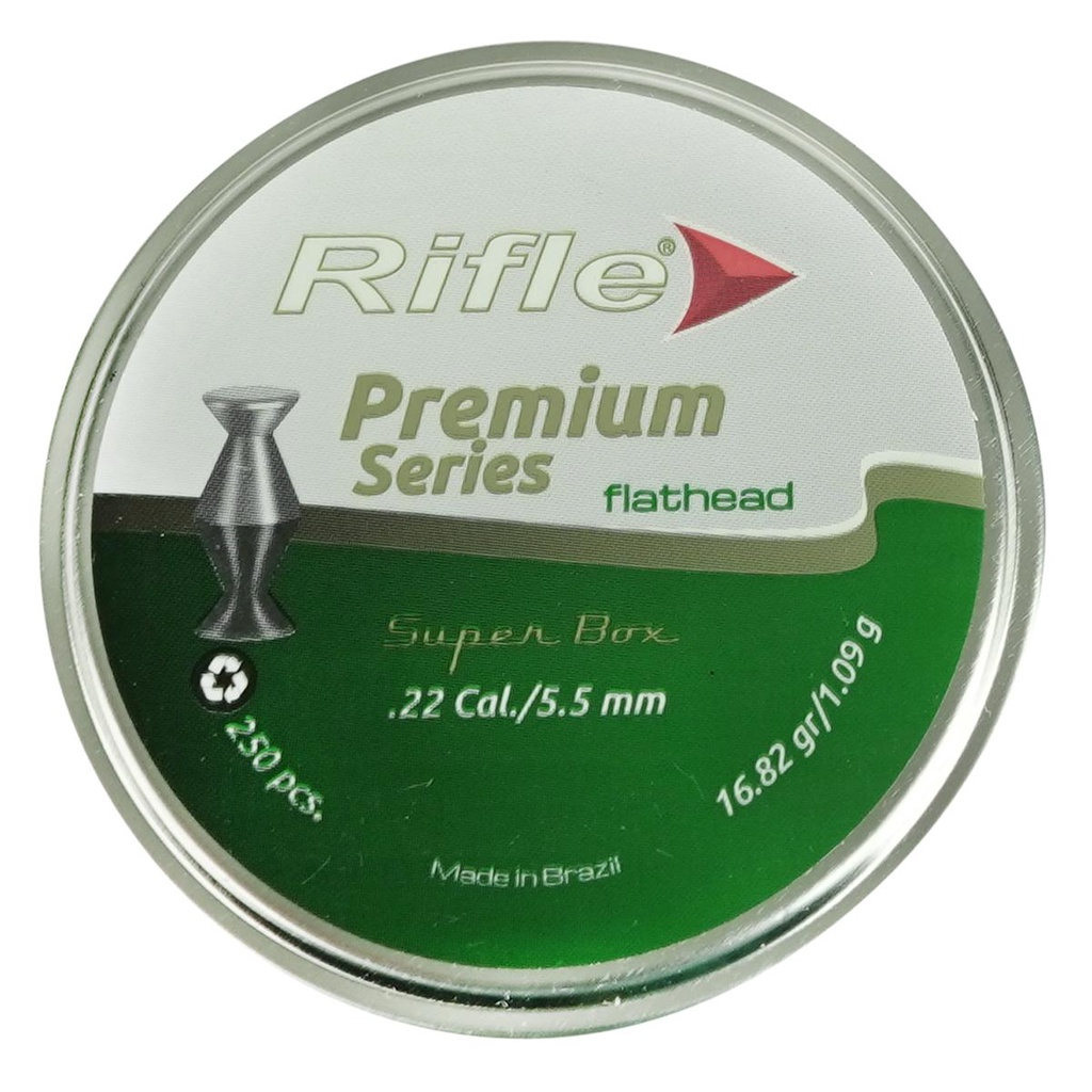 Produto de uso exclusivo em práticas esportivas. O uso do produto exige treinamento e equilíbrio emocional. Deverá ser guardado em lugar seguro e fora do alcance de terceiros. A marca RIFLE é uma empresa que há 30 anos fabrica as melhores munições para Armas de Pressão e Ar comprimido do Brasil. Reconhecida por produzir Chumbos que estão entre os quatro melhores do mundo, usados também por atletas olímpicos e campeões mundiais, aprovados pelas melhores fabricantes de armas do mundo. Símbolo de qualidade e excelência. O Chumbinho Premium Flathead possui 16.82 de gramatura e um peso de 1.09 gramas, com Calibre de 5.5mm. Ele é muito utilizado para competições de tiros em alvos de papel, sendo usado então por vários medalhistas olímpicos. Sua eficiência de disparado é de até 25 metros e sua ponta é chata ( Flathead ) o que facilita a visualização das perfurações nos Alvos. Ta esperando o que? garanta agora mesmo o seu com o melhor custo benefício do mercado, aqui, na Ar15 SPORT! ESPECIFICAÇÕES TÉCNICAS: - Marca: Rifle - Calibre: 5.5mm (.22) - Modelo: Premium Series - Linha: Flathead - Material: Chumbo - Quantidade: 250 unidades - Gramatura: 16.82gr - Peso: 1.09g - Peso bruto total da lata: 150g ITENS INCLUSOS: - 01 Lata de Chumbinho Rifle Premium Series Flathead calibre 5.5mm 250un. INFORMAÇÃO: Os equipamentos, peças e acessórios aqui listados são de uso exclusivo em armas de pressão (gás comprimido ou mola), airsoft, paintball, esferas plásticas (BBS) e estão em conformidade com a legislação brasileira de USO PERMITIDO "É permitido o uso de armas de pressão por ação de gás comprimido ou por ação de mola, com calibre igual ou inferior a seis milímetros (6mm ou 6.0mm), e das que lançam esferas de plástico com tinta, como os lançadores de paintball." Conforme parágrafo único do Art. 11 do DECRETO Nº 11.615, DE 21 DE JULHO DE 2023. A venda desses itens é feita somente para maiores de 18 anos mediante a comprovação de maior idade. Atenção: O envio de Armas de pressão e Airsoft é realizado somente por transportadora. Caso tenham dúvidas entrar em contato.