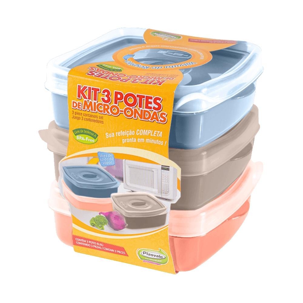 Conjunto de Potes Plásticos Plasvale Wave 3 Peças, Sortido - 1434 | Home & Living