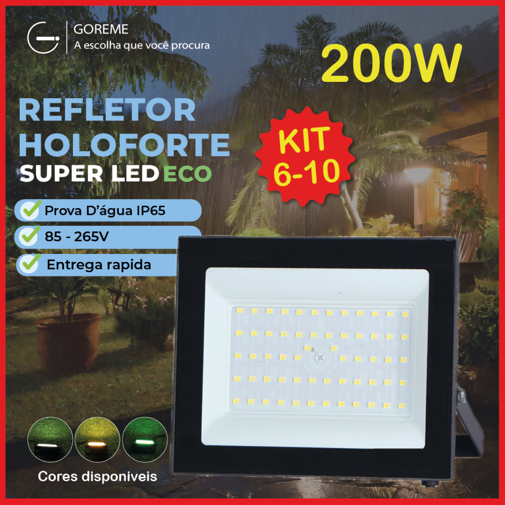Kit 10 Holofote Refletor Led ECO Pro 200W Branco Frio | Branco Quente | Verde | Iluminação p/ Jardim - 76% OFF | Home & Living