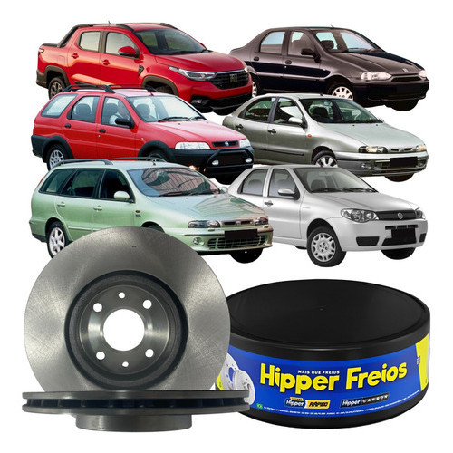 Este anúncio contém os seguintes produtos: 02 (dois) Discos de Freio Dianteiro Ventilado Original Hipper Freios. Atenção: Produtos Novos e Originais, com 3 meses de garantia total, a pronta entrega. Código do produto: HF-30. Aplicação dos Veículos: Veiculo: Brava; Motores:1.6 16v, 1.8 16v; Eixo: Dianteiro: Furos: 4 furos: Diâmetro: 257mm; Anos de fabricação: 2000, 2001, 2002, 2003; Obs: Sem cubo; Veículo: Doblô; Motores: 1.3 16v; Eixo Dianteiro Furos: 4 furos:; Diâmetro: 257mm; Ano Inicial: 2002, 2003, 2004, 2005, 2006; Obs: Sem cubo; Veículo: Doblô; Motores: 1.4 8v; Eixo Dianteiro; Furos: 4 furos: Diâmetro: 257mm; Ano Inicial: 2010, 2011, 2012, 2013, 2014; Obs: Sem cubo; Veículo: Doblô; Motores: 1.6 16v; Eixo Dianteiro; Furos: 4 furos: Diâmetro: 257mm; Ano Inicial: 2002, 2003; Obs: Sem cubo; Veículo: Doblô; Motores: 1.8 8v, 1.8 16v; Eixo Dianteiro; Furos: 4 furos: Diâmetr: 257mm; Ano Inicial: 2004, 2005, 2006, 2007, 2008, 2009, 2010, 2011, 2012, 2013, 2014, 2015, 2016; Obs: Sem cubo; Veículo: Idea; Motores: 1.4 8v, 1.8 8v; Eixo Dianteiro; Furos: 4 furos: Diâmetro: 257mm; Ano Inicial: 2004, 2005, 2006, 2007, 2008, 2009, 2010, 2011, 2012, 2013, 2014, 2015, 2016; Obs: Sem cubo; Montadora: Fiat; Veículo: Marea; Motores: 1.6 16v; Eixo Dianteiro; Furos: 4 furos: Diâmetro: 257mm; Ano Inicial: 2006, 2007; Obs: Sem cubo; Veículo: Marea; Motores: 1.8 16v; Eixo Dianteiro; Furos: 4 furos: Diâmetro: 257mm; Ano Inicial: 1999, 2000, 2001, 2002, 2003, 2004, 2005, 2006, 2007; Obs: Sem cubo; Veículo: Marea; Motores: 2.0 20v; Eixo Dianteiro; Furos: 4 furos: Diâmetro Externo 257mm; Ano Inicial: 1998, 1999, 2000, 2001, 2002, 2003, 2004, 2005, 2006, 2007; Obs: Sem cubo; Veículo: Marea; Motores: 2.4 20v; Eixo Dianteiro; Furos: 4 furos: Diâmetro: 257mm; Ano Inicial: 2001, 2002, 2003, 2004, 2005, 2006, 2007; Obs: Sem cubo; Veículo: Marea Weekend; Motores: 1.6 16v; Eixo Dianteiro; Furos: 4 furos: Diâmetro: 257mm; Ano Inicial: 2006, 2007; Obs: Sem cubo; Veículo: Marea Weekend; Motores: 1.8 16v; Eixo Dianteiro; Furos: 4 furos: Diâmetro: 257mm; Ano Inicial: 1999, 2000, 2001, 2002, 2003, 2004, 2005, 2006, 2007; Obs: Sem cubo; Veículo: Marea Weekend; Motores: 2.0 20v; Eixo Dianteiro; Furos: 4 furos: Diâmetro: 257mm; Ano Inicial: 1998, 1999, 2000, 2001, 2002, 2003, 2004, 2005, 2006, 2007; Obs: Sem cubo; Veículo: Marea Weekend; Motores: 2.4 20v; Eixo Dianteiro; Furos: 4 furos: Diâmetro: 257mm; Ano Inicial: 2001, 2002, 2003, 2004, 2005, 2006, 2007; Obs: Sem cubo; Veículo: Palio; Motores: 1.6 16v; Eixo Dianteiro; Furos: 4 furos: Diâmetro: 257mm; Ano Inicial: 1996, 1997, 1998, 1999, 2000, 2001, 2002, 2003; Obs: Sem cubo; Veículo: Palio Adventure; Motores: 1.6 16v; Eixo Dianteiro; Furos: 4 furos: Diâmetro: 257mm; Ano Inicial: 2000, 2001, 2002, 2003, 2004, 2005, 2006, 2007, 2008, 2009, 2010; Obs: Sem cubo; Veículo: Palio Adventure; Motores: 1.8 16v; Furos: 4 furos: Eixo Dianteiro; Diâmetro: 257mm; Ano Inicial: 2002, 2003, 2004, 2005, 2006, 2007, 2008, 2009, 2010; Obs: Sem cubo; Veículo: Palio Weekend; Motores: 1.3 16v; Eixo Dianteiro; Furos: 4 furos: Diâmetro Externo 257mm; Ano Inicial: 1999, 2000, 2001, 2002, 2003, 2004; Obs: Sem cubo; Veículo: Palio Weekend; Motores: 1.5 16v; Eixo Dianteiro; Furos: 4 furos: Diâmetro: 257mm; Ano Inicial: 1999, 2000, 2001, 2002, 2003, 2004, 2005; Obs: Sem cubo; Veículo: Palio Weekend; Motores: 1.8 16v; Eixo Dianteiro; Furos: 4 furos: Diâmetro Externo 257mm; Ano Inicial: 1999, 2000, 2001, 2002, 2003, 2004, 2005, 2006; Obs: Sem cubo; Veículo: Siena; Motores: 1.6 16v; Eixo Dianteiro; Furos: 4 furos: Diâmetro Externo 257mm; Ano Inicial: 1997, 1998, 1999, 2000, 2001, 2002, 2003, 2004, 2005; Obs: Sem cubo; Veículo: Siena; Motores: 1.8 16v; Eixo Dianteiro; Furos: 4 furos: Diâmetro: 257mm; Ano Inicial: 1999, 2000, 2001, 2002, 2003, 2004, 2005; Obs: Sem cubo; Veículo: Strada; Motores: 1.3 8v; Eixo Dianteiro; Furos: 4 furos: Diâmetro: 257mm; Ano Inicial: 2020, 2021; Obs: Sem cubo; Veículo: Strada; Motores: 1.4 8v; Eixo Dianteiro; Furos: 4 furos: Diâmetro: 257mm; Ano Inicial: 2020, 2021; Obs: Sem cubo; Veículo: Tempra; Motores: 2.0 16v; Eixo Dianteiro; Furos: 4 furos: Diâmetro: 257mm; Ano Inicial: 1992, 1993, 1994; Obs: Sem cubo; Veículo: Tempra; Motores: 2.0 8v; Eixo Dianteiro; Furos: 4 furos: Diâmetro: 257mm; Ano Inicial: 1992, 1993, 1994; Obs: Sem cubo; Veículo: Tempra SW; Motores: 2.0 8v, 2.0 16v; Eixo Dianteiro; Furos: 4 furos: Diâmetro: 257mm; Ano Inicial: 1994, 1995, 1996, 1997; Obs: Sem cubo; Veículo: Tipo; Motores: 2.0 16v; Eixo Dianteiro; Furos: 4 furos: Diâmetro: 257mm; Ano Inicial: 1994, 1995, 1996; Obs: Sem cubo. Montadora: Fiat; Veículo: Tipo; Motores: 2.0 8v; Eixo Dianteiro; Furos: 4 furos: Diâmetro: 257mm; Ano Inicial: 1994, 1995; Obs: Sem cubo. Tem garantia? Sim, todos nossos produtos têm 3 Meses (90 dias) de garantia contra defeitos de fabricação, exceto os amortecedores que possuem 2 anos de garantia total.