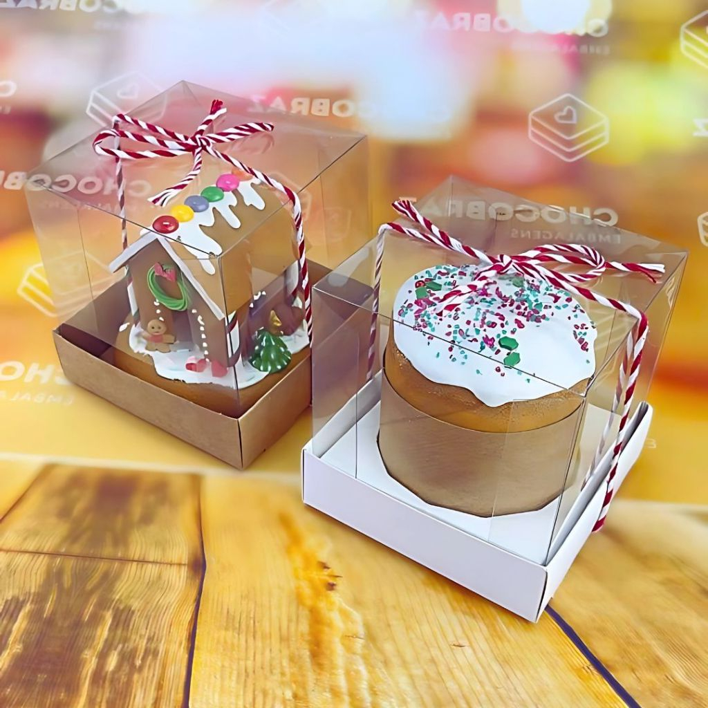 10~50 CAIXA MINI PANETONE 100g BRANCA OU KRAFT TAMPA ACETATO | Stationery