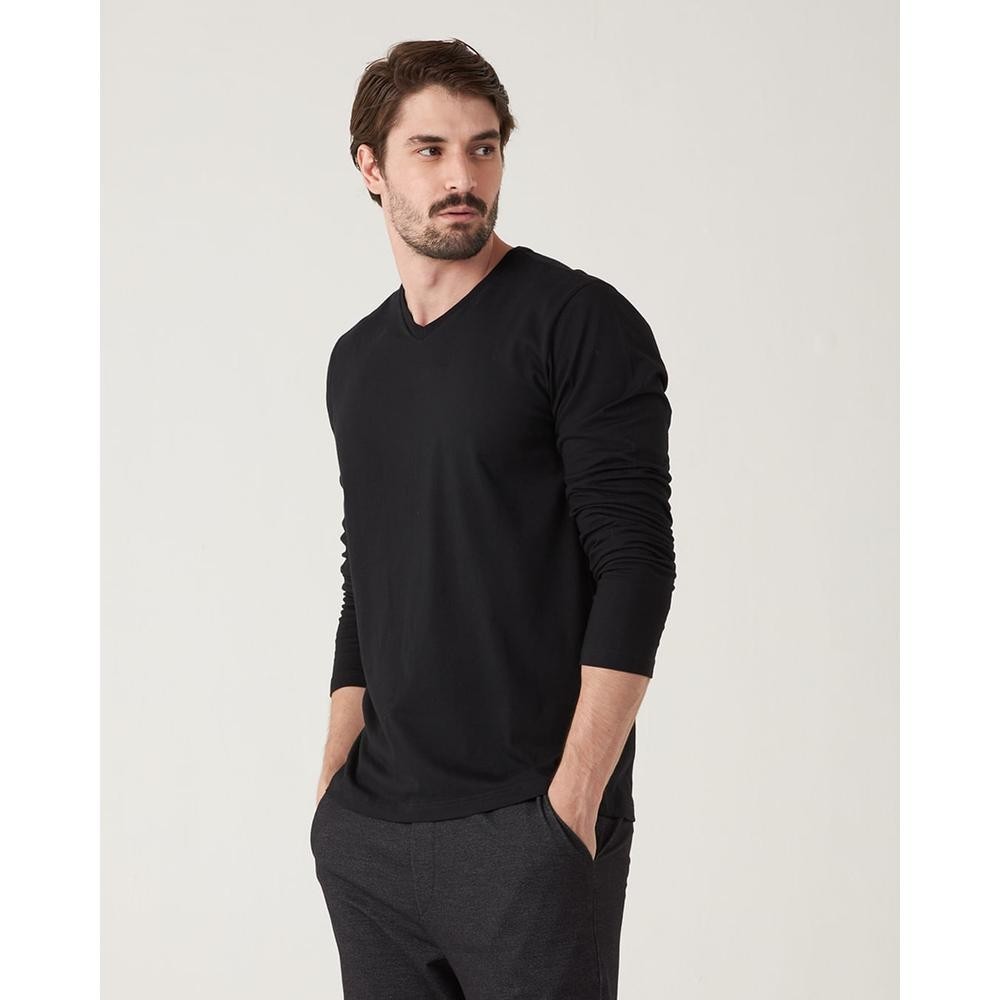 Camiseta Básica Malwee confeccionada em meia malha. Modelo possui modelagem tradicional, que acompanha as linhas do corpo com muito conforto, mangas longas e decote em "V". As camiseta básicas Malwee são atemporais e indispensáveis no guarda-roupa masculino por serem versáteis, confortáveis e feitas para durar, já que possuem a melhor durabilidade do mercado. A meia malha é um tecido leve, com muito frescor e molda-se perfeitamente ao corpo com bom caimento. Combine com calça jeans skinny Malwee e tênis slip on!Modelagem: TradicionalDecote: V