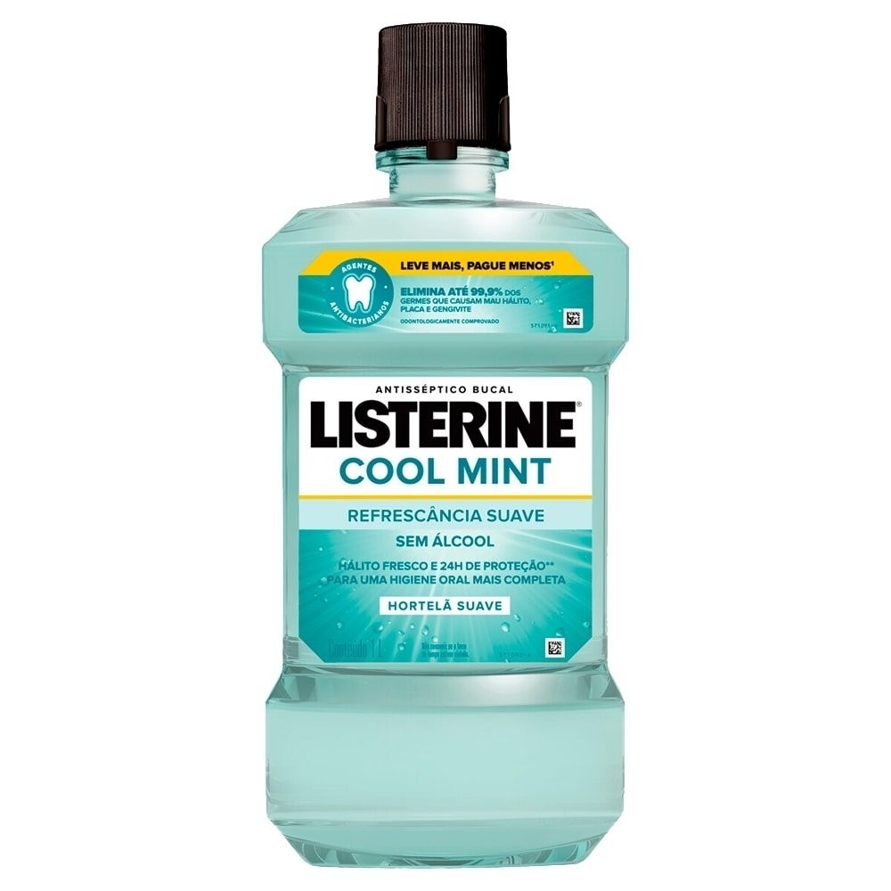Enxaguante Bucal Listerine, Cool Mint Refrescância Intensa, sem Álcool 1 Litro | Health
