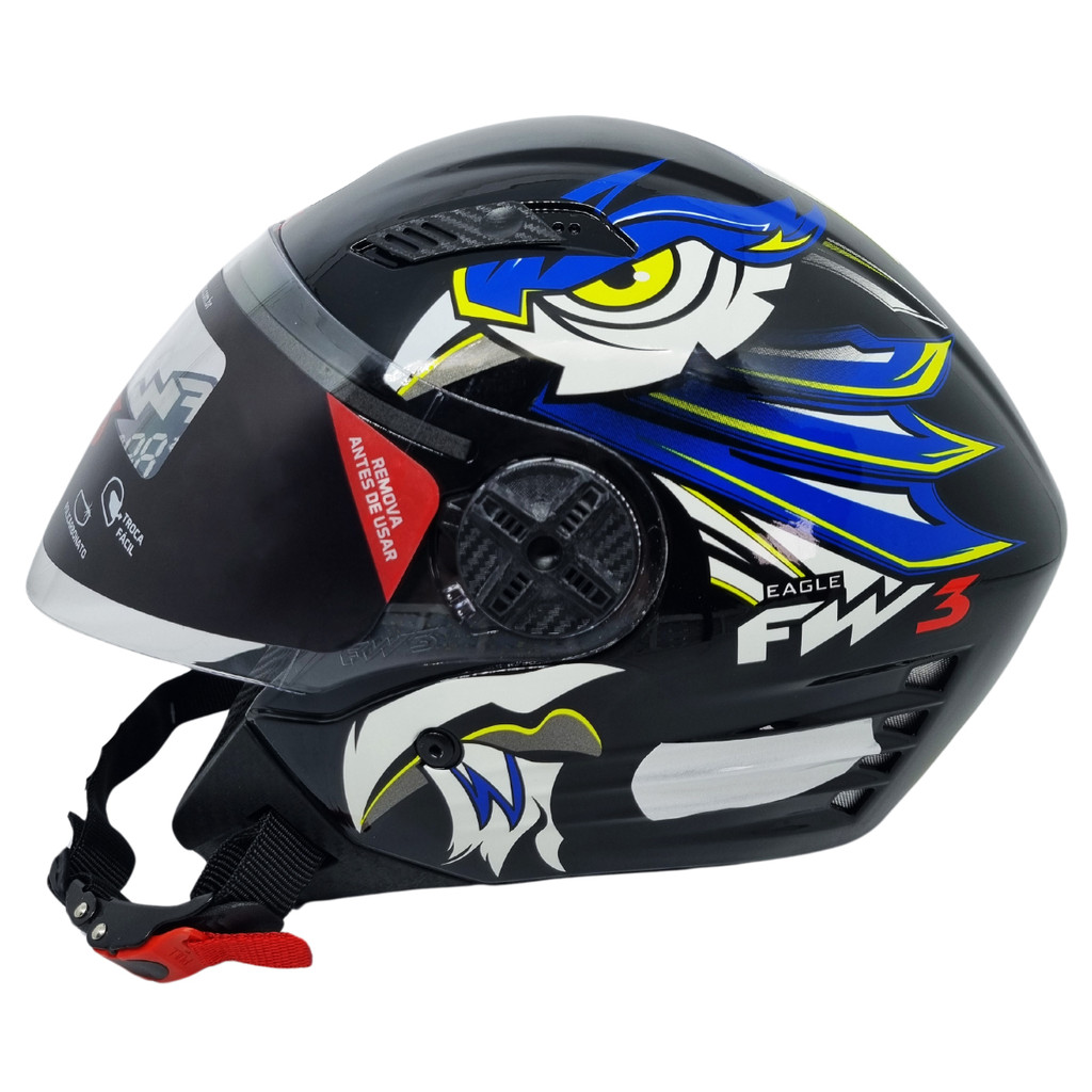 Bem-Vindo(a) a AT4U! Capacete FW3 Modelo X OPEN EAGLE Azul com Amarelo Com design esportivo e diferenciado, o capacete FW3 é perfeito para todos os motociclistas. Leve, estiloso e confortável, este moderno capacete vem com entrada e saída de ar, é fabricado em ABS super resistente e possui certificado de segurança. O melhor para você motociclista andar por aí com muita segurança, conforto e estilo! Capacetes da FW3 são projetados para lhe oferecer uma experiência inesquecível em cada um dos seus trajetos. Seus capacetes possuem uma estrutura compacta e se adapta perfeitamente ao condutor, preservando ao máximo sua segurança e garantindo trajetos confortáveis e divertidos. Maior conforto e segurança no seu andar! *ANTES DE EFETUAR SUA COMPRA, SELECIONE COR E TAMANHO DESEJADO.* Tamanhos Disponíveis: - 56 (Medidas da cabeça entre 55-56 cm); - 58 (Medidas da cabeça entre 57-58 cm); - 60 (Medidas da cabeça entre 59-60 cm). Características: - Cor: Azul com Amarelo; - Modelo: X OPEN EAGLE; - Casco em ABS; - Viseira transparente de policarbonato 2,0 mm, podendo ser removida; - Forração em camurça Jet Black 6 mm (Removível); - Entrada e saída de ar; - Reparo com trava de viseira; - Selo Inmetro; Conteúdo da Embalagem: - 01 Capacete FW3 Modelo X OPEN EAGLE Azul com Amarelo. IMPORTANTE: *Postagem em até 24h.* *Entrega Garantida.* *Produtos Originais e Certificados.* *COMPRE COM SEGURANÇA.* *Tire suas dúvidas via chat com nossos especialistas.*