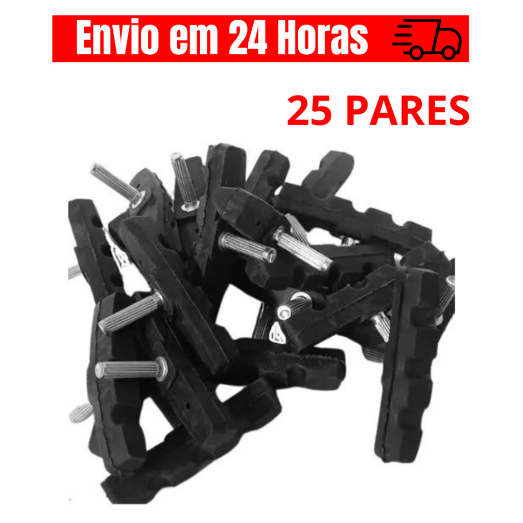 25 PARES DE SAPATA PARA FREIO V-BRAKE CANTILEVER 70mm Com a medida de 70mm, essas sapatas são projetadas para proporcionar uma frenagem suave e precisa, permitindo que você tenha o controle total da sua bicicleta em diferentes condições de terreno. Características / Atributos Compatibilidade: Sistema de freio V-Brake ou freio Cantilever Medida de 70mm Cor Preta: O acabamento preto confere um visual discreto e estiloso às sapatas, combinando perfeitamente com a maioria das bicicletas. Composição: Borracha e Aço: Marca: Paco; Mantenha a segurança e a confiança nas suas pedaladas com o Par de Sapatas para Freio V-Brake 70mm Pino Paco. Seja em trilhas, ciclismo urbano ou qualquer outro tipo de terreno, essas sapatas garantem que você possa frear com eficiência e controle total, proporcionando uma experiência de pedalada mais segura e prazerosa. *Valor referente a 25 PARES ** _________________________________________________________________________ Dúvidas Frequentes: • Os produtos são novos e originais? Todos os produtos comercializados pela MWR Bikes são novos e originais. • Qual o prazo de envio após a compra? Envio IMEDIATO! E, além disso, todos nossos produtos passam por uma rigorosa avaliação antes do envio. Precisa de ajuda? Utilize o Chat e esclareça suas dúvidas, nós estamos à disposição para qualquer informação! Obrigado por escolher a MWR Bikes!