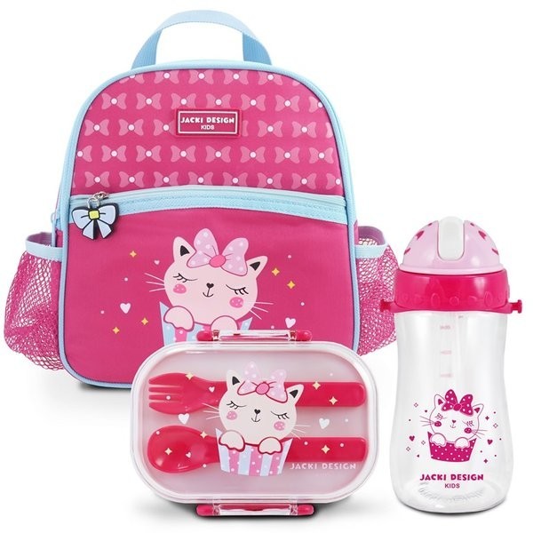Não perca a chance! Um kit perfeito para o seu pequenino e pequenina Descrição Completo: Lancheira Térmica Infantil 4750ml: Trazendo a necessidade do dia-a-dia como prioridade, a Jacki Design trouxe para os pequenos a nova bolsa térmica em formato de mochila, ideal para levar nas costas. Tem capacidade para 4750ML, possui bolso externo, bolsos laterais para levar garrafa e alças ajustáveis. A bolsa térmica é feita de microfibra resistente e a parte interna é forrada com folhas de alumínio, conservando os alimentos frescos por mais tempo. É ideal para passeios, viagens ou escolinha. Conheça a linha completa da coleção PIMPOLHOS e complete o seu kit! CUIDADOS GERAIS: Limpe o produto com um pano úmido. Caso necessário, use sabão neutro ou álcool para higienizar o local. Deixe secar na sombra. ATENÇÃO: Para preservar a vida útil do produto, recomendamos não deixar o produto de molho, não levar a máquina de lavar e também não utilizar produtos químicos. Medidas: Comprimento: 20cm x Largura: 11cm x Altura: 21.5cm Pote p/ Lanche de 2 Andares Infantil 400ml: A hora do lanche ficou muito mais divertida com o pote para lanche de 2 andares da coleção PIMPOLHOS. Com capacidade para 400ml, possui divisórias na parte inferior para facilitar a separação dos alimentos e uma bandeja com encaixe para os talheres que acompanham o kit; e tampa com fechamento em travas de segurança. É perfeito para passeios, viagens e escolinha. Produto livre de BPA e com qualidade Jacki Design. Conheça a linha completa da coleção PIMPOLHOS e complete o seu kit! (INSTRUÇÕES DE USO: Retire a tampa antes de levar ao micro-ondas; usar somente para aquecer comida, não para cozinhar; Vai ao freezer e lava-louças; Temperatura de uso: -20°C ~100°C; Limpe usando uma esponja macia e detergente neutro. Medidas: Comprimento: 13.7cm x Largura: 10.2cm x Altura: 8.1cm Garrafa Infantil 460ml: A garrafa infantil da coleção PIMPOLHOS de 460 ml, possui um design ergonômico, canudo retrátil, acompanha trava e vedaçao para evitar que vaze; e alça ajustável. É ideal para levar líquidos para passeios,viagens ou escolinha. Produto livre de BPA e com qualidade Jacki Design. Conheça a linha completa da coleção PIMPOLHOS e complete o seu kit! (INSTRUÇÕES DE USO: Não vai ao micro-ondas ou lava-louças; Temperatura de uso: -20°C ~70°C; Limpe usando uma esponja macia e detergente). Medidas: Comprimento: 8cm x Largura: 8cm x Altura: 18cm