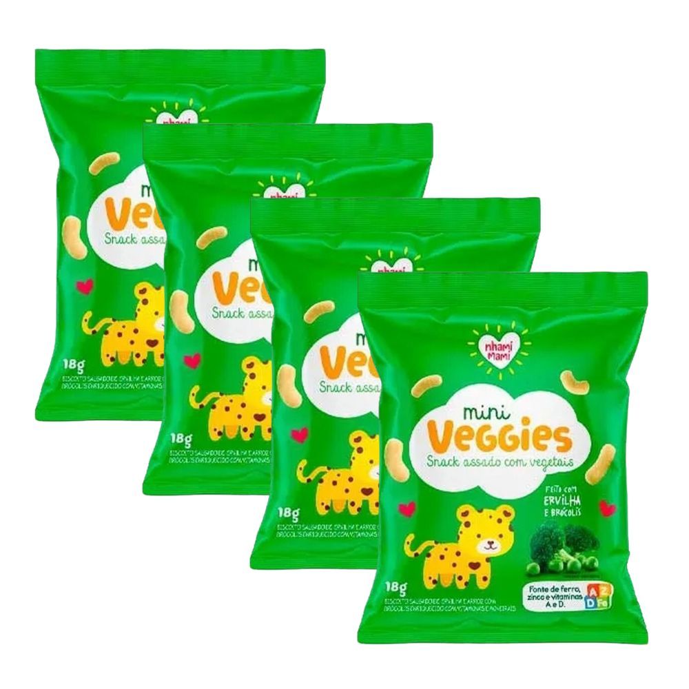Biscoito Nhami Mami Mini Veggie Snack Ervilha e Brócolis 18g Os deliciosos biscoitos saudáveis da Linha Veggies são assados com vegetais, são veganos e possuem o tamanho ideal para caber nos dedinhos da crança. Algumas Características do Snack Veggies Integral Assado Sem gordura trans Sem glúten Com ingredientes naturais Sem alergênicos (conforme RDC 26-15)