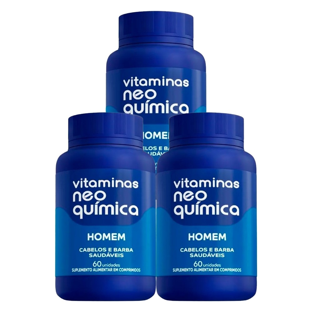 Kit 3 und Vitaminas Neo Homem 60 Comprimidos O Vitaminas Neo Química Homem é um suplemento vitamínico desenvolvido para fortalecer o sistema imunológico, melhorar a saúde e aumentar a vitalidade masculina. Com uma combinação de 14 vitaminas e minerais essenciais, ele contribui para a melhora das defesas naturais do corpo, prevenindo doenças e promovendo o bem-estar. Benefícios: Fortalecimento do sistema imunológico; Ação antioxidante para combater radicais livres; Promove a saúde da pele, cabelos e barba; Suplemento ideal para complementar as necessidades nutricionais masculinas. Composição Rica em Vitaminas e Minerais: Inclui vitaminas A, C, D, E, complexo B, além de minerais como zinco, selênio e magnésio, essenciais para o funcionamento do organismo e manutenção da saúde masculina. Modo de Uso: Ingerir 1 comprimido ao dia, preferencialmente junto com uma das refeições, ou conforme orientação de um médico ou nutricionista. Indicações: Suplemento ideal para homens que buscam reforçar sua imunidade, manter uma rotina saudável e garantir o bom funcionamento do corpo com os nutrientes adequados. Conservar em local seco e fresco. Não exceder a dose recomendada sem orientação médica.