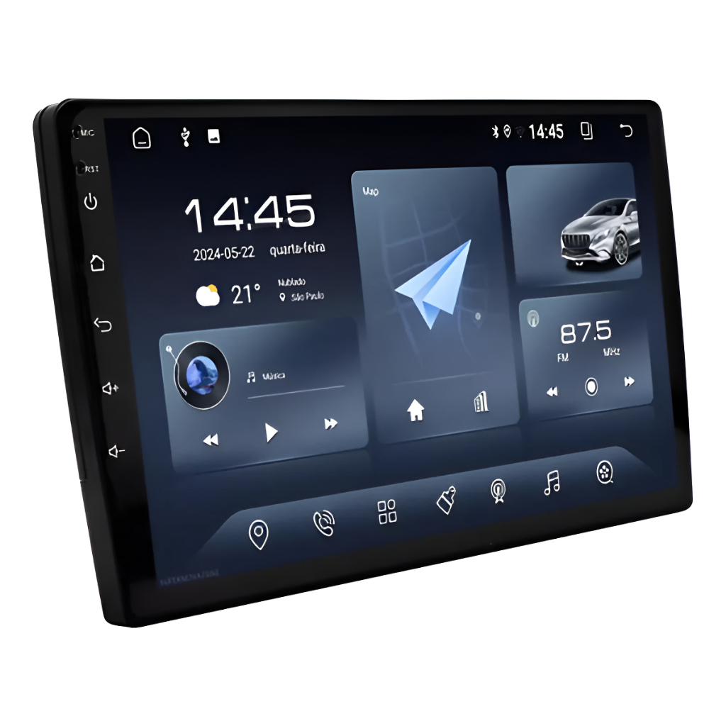 A Central Multimídia T100 10" 2DIN Android combina design sofisticado e tecnologia avançada para transformar a experiência automotiva. Compatível com Android 12, oferece recursos intuitivos para navegação, entretenimento e conectividade. Principais Funcionalidades: - Tela Touch Full HD 10": Resolução de 1024x600 e vidro capacitivo para maior precisão. - Conectividade Avançada: Wi-Fi integrado, Bluetooth e suporte a espelhamento para dispositivos Android e iOS. - Entretenimento Completo: Aplicativos como YouTube, Netflix e Waze, além de suporte a vídeos MP4/MP5 e músicas MP3. - Navegação GPS Online e Offline: Orientação precisa em qualquer trajeto. - Áudio Potente: Saída de 4x50W com qualidade excepcional. - Facilidade de Uso: Controle pelo volante e entradas USB, RCA e para câmera de ré e frontal. Especificações Técnicas: - Memória RAM de 2GB e ROM de 32GB. - Tensão de alimentação: 12V. - Comando no volante. - Suporte para receptor de TV. Conteúdo da Embalagem: - Central Multimídia. - Chicote 16 vias. - Extensor USB. - Antena GPS. - Manual do usuário em português. - Suportes para fixação. Garanta a Central T100 10" 2DIN Android e eleve o nível de tecnologia, conforto e entretenimento do seu veículo.