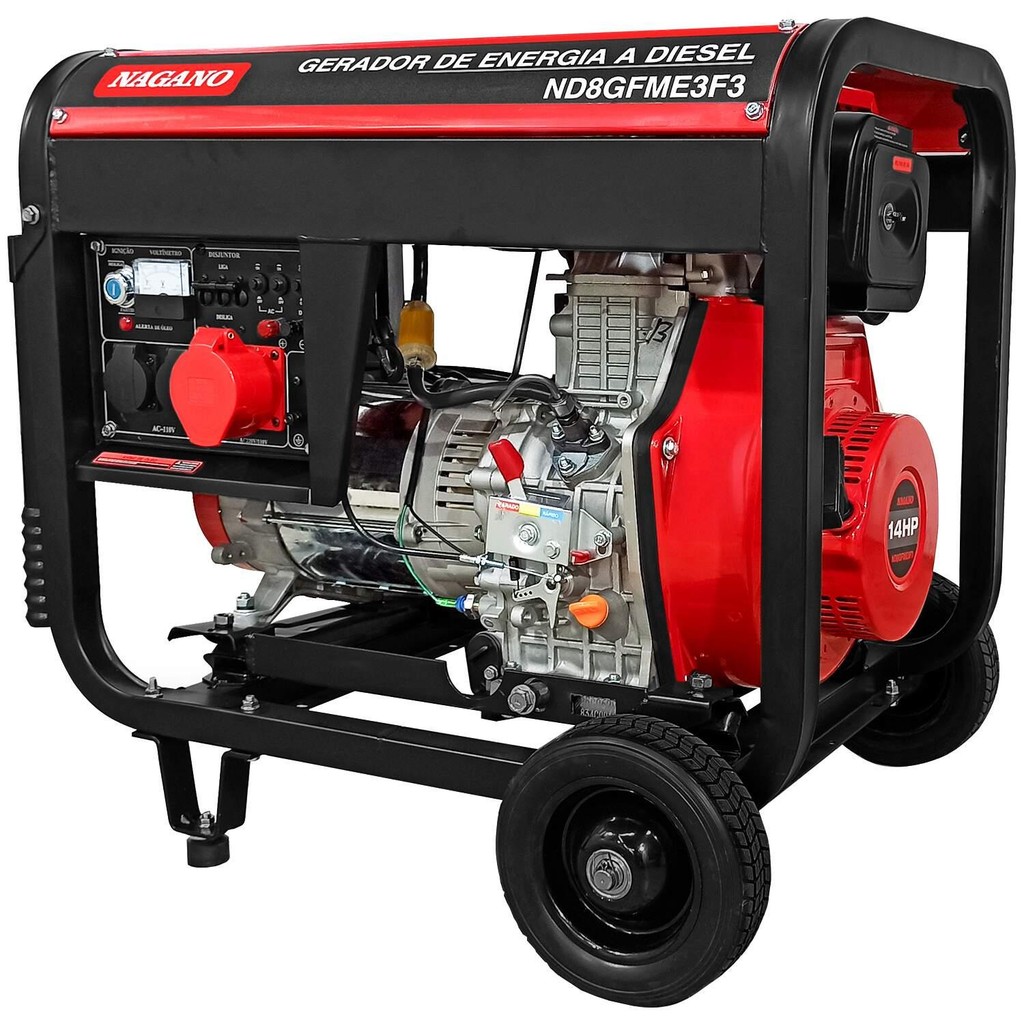 Gerador de Energia 10kva a Diesel Partida Elétrica 127/220v 14hp Trifásico - ND8GFME3F3 NAGANO Potência, confiabilidade e autonomia onde você estiver A falta de energia pode causar prejuízos, interromper a produção, atrapalhar momentos de lazer e comprometer a segurança da sua casa ou empresa. O Gerador de Energia 10kva a Diesel Nagano foi desenvolvido para acabar com essa dor, entregando alto desempenho, confiabilidade e praticidade em qualquer situação. Com partida elétrica e motor 14HP a diesel, esse equipamento é a solução ideal para quem busca energia estável, potente e econômica. Principais Benefícios Versatilidade total: perfeito para residências, escritórios, indústrias, obras, camping, pescaria e uso emergencial. Confiabilidade garantida: tecnologia robusta que assegura funcionamento contínuo sem falhas. Eficiência energética: motor de 14HP e potência nominal de 7.5kW para suportar diversas aplicações. Autonomia e praticidade: tanque de 16 litros e fácil operação com partida elétrica. Durabilidade Nagano: projetado para resistir ao uso intenso e às condições mais exigentes. Soluções com o Gerador de Energia 10kva a Diesel Partida Elétrica 127/220V 14HP Trif&aacu