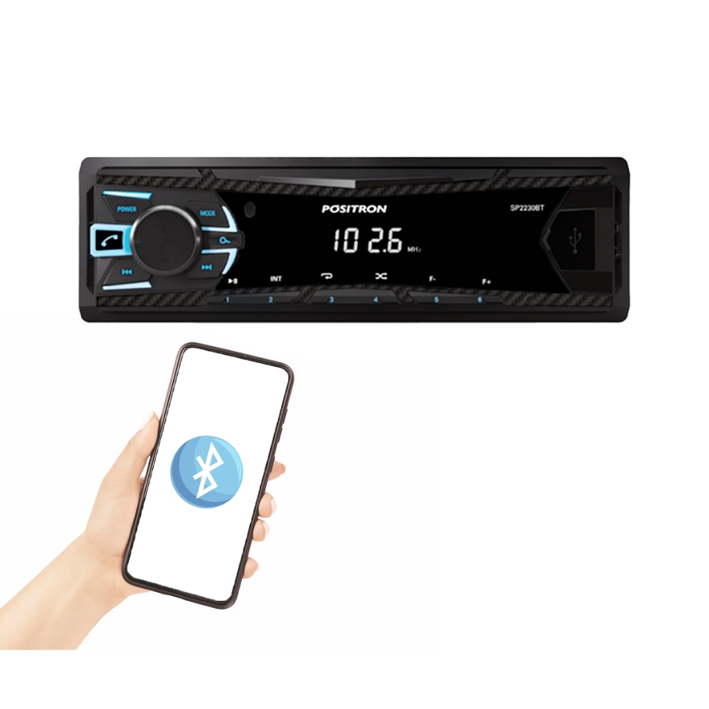 Som Automotivo Positron SP2230BT - Rádio MP3 com Bluetooth e USB Som automotivo Positron modelo SP2230BT, seu centro de entretenimento completo para o carro. Este rádio MP3 combina conectividade Bluetooth para músicas sem fio e viva-voz seguro, entrada USB frontal e sintonizador FM digital. Reproduza seus arquivos MP3/WMA com qualidade através do amplificador Classe D, personalize o som com 4 equalizações e controles de graves/agudos, e aproveite funções inteligentes como memória para 18 estações e Auto Memo. Com iluminação moderna, garantia de fábrica e instalação facilitada pelo conector ISO, ele oferece praticidade e performance sonora superior. APLICAÇÃO Uso geral em automóveis com alimentação 12V e conexão padrão ISO. CARACTERÍSTICAS Bluetooth para HandsFree (viva-voz) e Audio Streaming sem fios Entrada USB frontal compatível com pendrives de até 32GB Formatos de áudio suportados: MP3 e WMA Sintonizador FM digital com memória para 18 estações Funções: Repeat, Auto Memo, Scan/Rádio Scan e Relógio 4 pré-Equalizações (Rock, Pop, Classic, Flat) + 1 personalizável Controles de Loudness, Bass e Treble Iluminação azul nas teclas e display branco ESPECIFICAÇÕES TÉCNICAS Alimentação: 12V DC (bateria do veículo) Potência de Saída: 4 x 7 Watts RMS (10% THD, @14.4V) Faixa de Sintonia FM: 76.1 MHz a 107.9 MHz Bluetooth: Versão 2.1 + EDR, Classe II Amplificador: Tecnologia Classe D Conector: Padrão ISO para instalação Conforme Lei 11.291/06: exposição a potência superior a 85dB pode causar danos auditivos. VANTAGENS Conectividade completa: Bluetooth para chamadas seguras + música sem fio + USB Som de qualidade com amplificador Classe D e controles de equalização Praticidade no uso diário com memória de rádio e funções de scan Instalação simplificada pelo conector padrão ISO Garantia de fábrica e design moderno com iluminação CONTEÚDO DA EMBALAGEM 01 Aparelho Rádio MP3 Positron SP2230BT Manual de Instruções Produto novo, original, acompanha nota fiscal e garantia do fabricante de 12 meses.