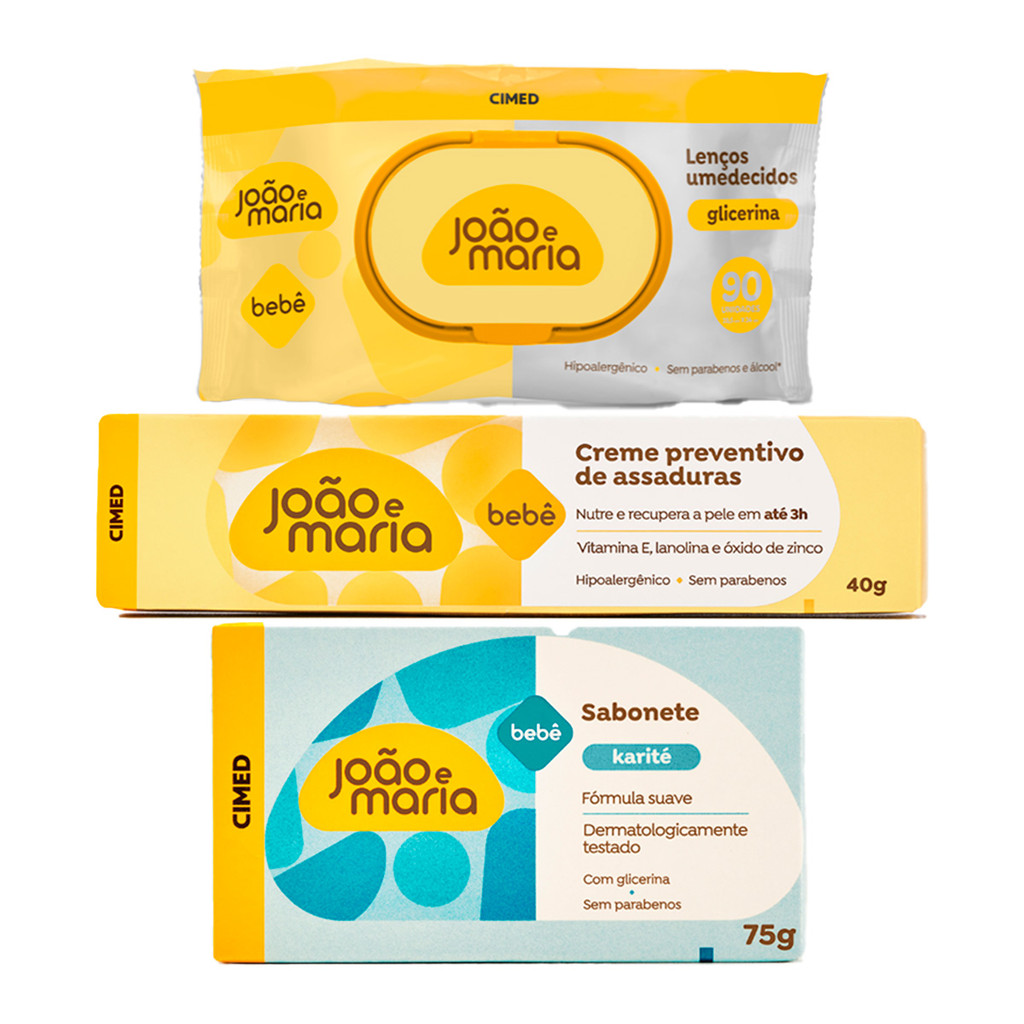 Kit João e Maria Lenço Glicerina + Creme Assadura + Sabonete | Mom & Baby