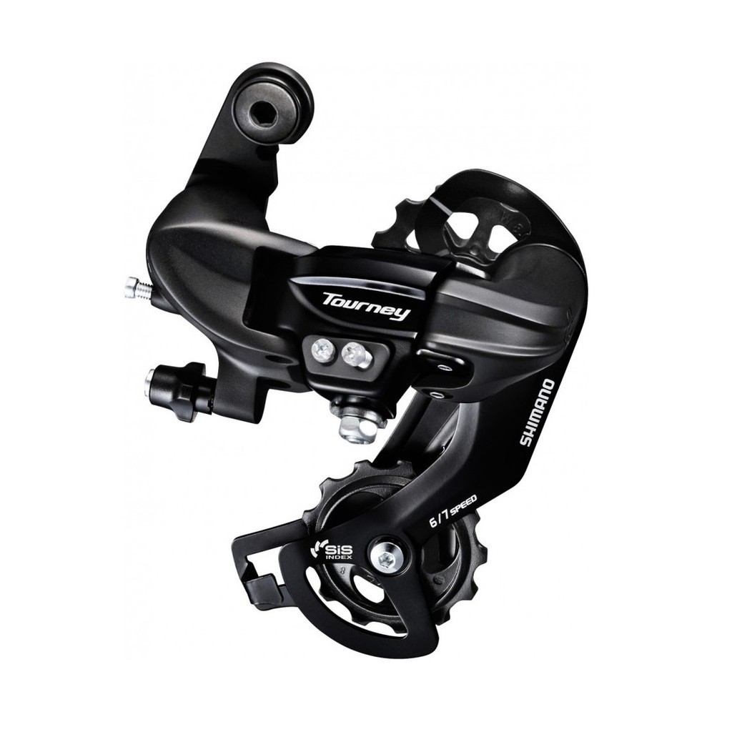 CÂMBIO TRASEIRO SHIMANO TOURNEY RD-TY300 SGS S/ GANCHEIRA - 6V / 7V - ATÉ 34D ATENÇÃO: - Item vendido pela Shimano Brasil em saco plástico; - Específico para relações: 3x7V, 2x7v ou 1x7v; - Compatível com catraca / Roda Livre 14/28 ou 14/34 com pedivela TRIPLO ou DUPLO; - Compatível com cassete de 7v 11/28, 12/28, 12/32, 11/34 com pedivela TRIPLO ou DUPLO; - Montagem com cassete acima de 36 dentes, não garante o funcionamento perfeito da relação; - SEM GANCHEIRA; - Fixação: DIRETA – Parafusado diretamente na gancheira do quadro. O RD-TY300 SGS é o câmbio traseiro da linha TOURNEY da Shimano, oferece um funcionamento preciso para uso urbano, em passeios e trilhas LEVES. Esse modelo é compatível com pedivela TRIPLO, DUPLO ou SINGLE em relação de 6v ou 7v. O cassete ou catraca deve ter o maior cog de até 34 dentes. A fixação é feita por parafuso diretamente na gancheira do quadro. Especificações: - Marca: SHIMANO; - Linha: TOURNEY; - Modelo: RD-TY300 SGS; - Modalidade: MTB (LEVE) / TREKKING / Urbano; - Específico para relações: 3x6v, 3x7v , 2x7V, 1x7v; - Compatível com: 6 e 7 Velocidades; - Sistema: DOUBLE SERVE – Servo duplo com polias de 13D cada; - Cage: SGS – Longo; - Tamanho máximo de dentes do cassete: 34D; - Capacidade total: 43D – Não é o tamanho do maior cog do cassete; - Diferença máxima das coroas do pedivela: 20D; - Fixação: DIRETA – Parafusado diretamente na gancheira do quadro; - Material: Aço, Plástico; - Cor: Preto; - Peso aproximado: 325g; - Origem: CHINA - Part. Number: ARDTY300D. Observação: - Item segue em saco plástico; - Produto original SHIMANO; - Importado por BLUECYCLE; - Garantia 01 ano SHIMANO BRASIL; - Acompanha nota fiscal. Aguardamos o seu pedido! INDIAN BIKE SHOP