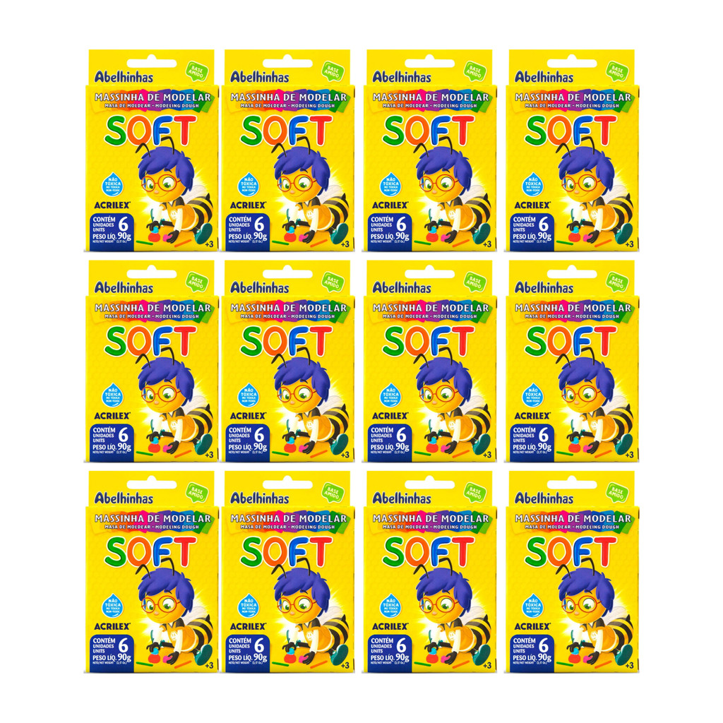Especificações técnicas: Marca: Acrilex; Referência: 073160000; Características do Produto: Desenvolvida para uso escolar ou entretenimento, à base de amido, não tóxica, super macia e cores vivas; Embalagem: Pacote com 12 caixinhas, cada caixinha com 90g, cores sortidas; Descrição: Ofereça aos seus clientes a massa para modelar Soft 90g da Acrilex, em pacote com 12 caixas de 6 cores! Fácil de moldar e com cores vibrantes, essa massa é ideal para estimular a criatividade. Aumente a satisfação dos seus clientes e seus lucros com um item essencial e muito procurado!