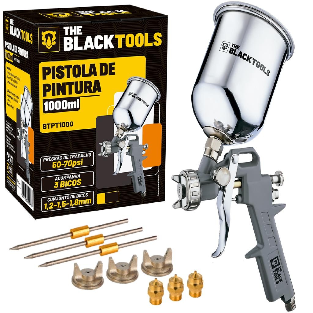 Pistola de Pintura Gravidade Caneca 1000 ml Rosca 1/4 BTPT1000 – The Black Tools A Pistola de Pintura Gravitacional BTPT1000 da The Black Tools é Uma Ferramenta Versátil e Eficiente, Ideal para Aplicação de Tintas Em Superfícies Diversas, Como Plástico, Metal e Cerâmica. Com Caneca de 1000 Ml e Design Leve, é Indicada Tanto para Uso Profissional Quanto para Hobbistas Que Possuem os Equipamentos Necessários. Seja Em Oficinas Automotivas, Serralherias ou Projetos de Construção Civil, Essa Pistola Garante Acabamento Uniforme e de Alta Qualidade Em Trabalhos Internos e Externos. VANTAGENS: - Acompanha Bicos de 1.2, 1.5 e 1.8 Mm para Diversas Aplicações. - Tanque de 1 Litro para Maior Autonomia Durante o Trabalho. - Compatibilidade Com Diferentes Tipos de Tinta Colorida. - Fácil de Operar, Seja por Profissionais ou Hobbistas. IDEAL PARA: - Trabalhadores da Construção Civil. - Profissionais de Pintura. - Oficinas de Automóveis. - Montadores de Móveis. FICHA TÉCNICA: - Tipo: Pistola Pneumática para Pintura. - Diâmetro do Bico: 1.2, 1.5, 1.8 Mm. - Tipo de Tinta: Pinturas Com Cor. - Pressão de Trabalho: 3 - 5 Bar. - Volume do Tanque: 1 L. MARCA: The Black Tools MODELO: BTPT1000 SKU:24464