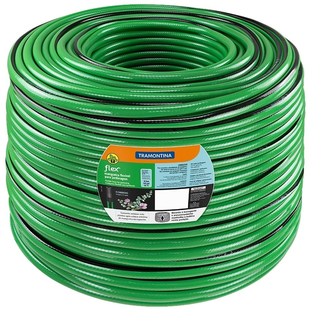 Mangueira Jardim Tramontina Flex Verde Com Faixa Preta 4 Camadas 100m | Home & Living