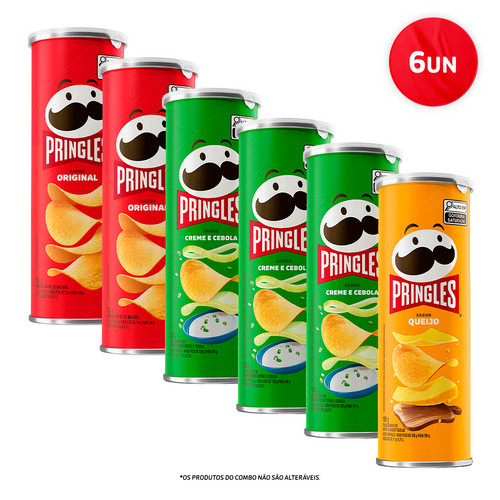 Combo Pringles Creme e Cebola 3 unid + Pringles Original 2 unid + Pringles Queijo 1 unid