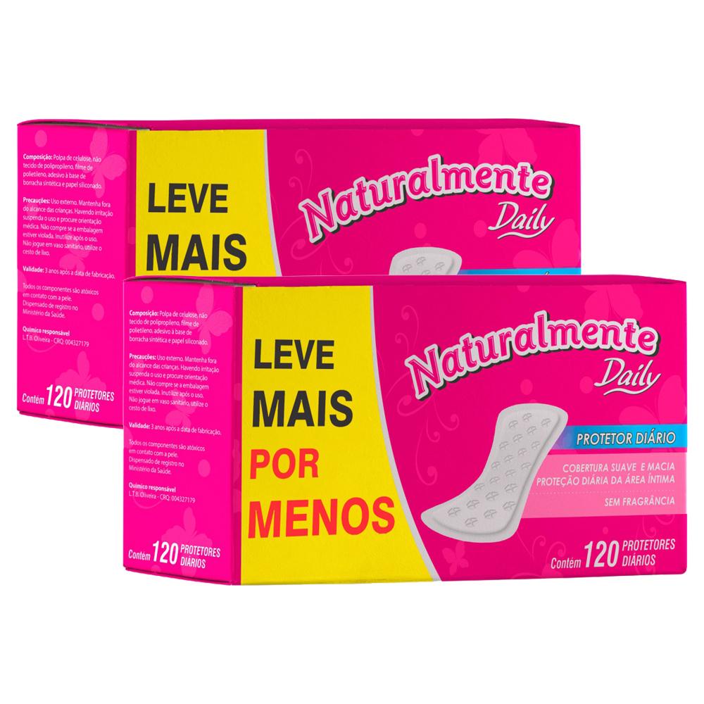 Kit 2 Pacotes de Protetores Diário Naturalmente Daily sem Fragrância 120un cada Com propósito de absorver a umidade natural do corpo, os protetores diários Naturalmente Daily, mantém a pele seca e uma sensação de frescor o dia todo. Contém: 1 caixa de Protetor Diário com 120 unidades Marca: Naturalmente Daily Abas: sem abas Sem perfume