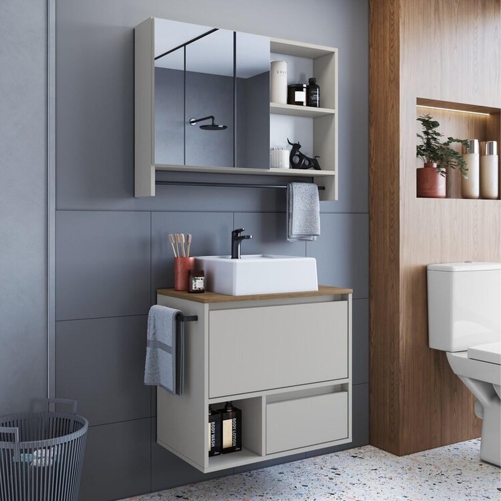 Conjunto para Banheiro Gabinete Suspenso 60cm com Toalheiro Cuba e Espelheira 80cm Cj8050.20 Mel/Arenas | Home & Living