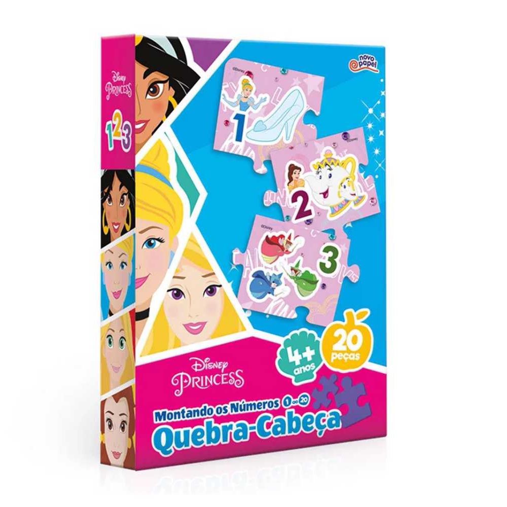 Quebra-Cabeça - 20 peças - Princesas Disney - Montando os Números - Toyster: divirta-se Montando os Números do 1 ao 20 com as Princesas Disney! Esse incrível quebra-cabeça educativo de 20 peças com peças dos ilustradas com personagens das Princesas Disney é perfeito para estimular o aprendizado e a diversão. As peças em papel e papel cartão tem alta qualidade de impressão para valorizar cada detalhe da imagem do quebra-cabeça.